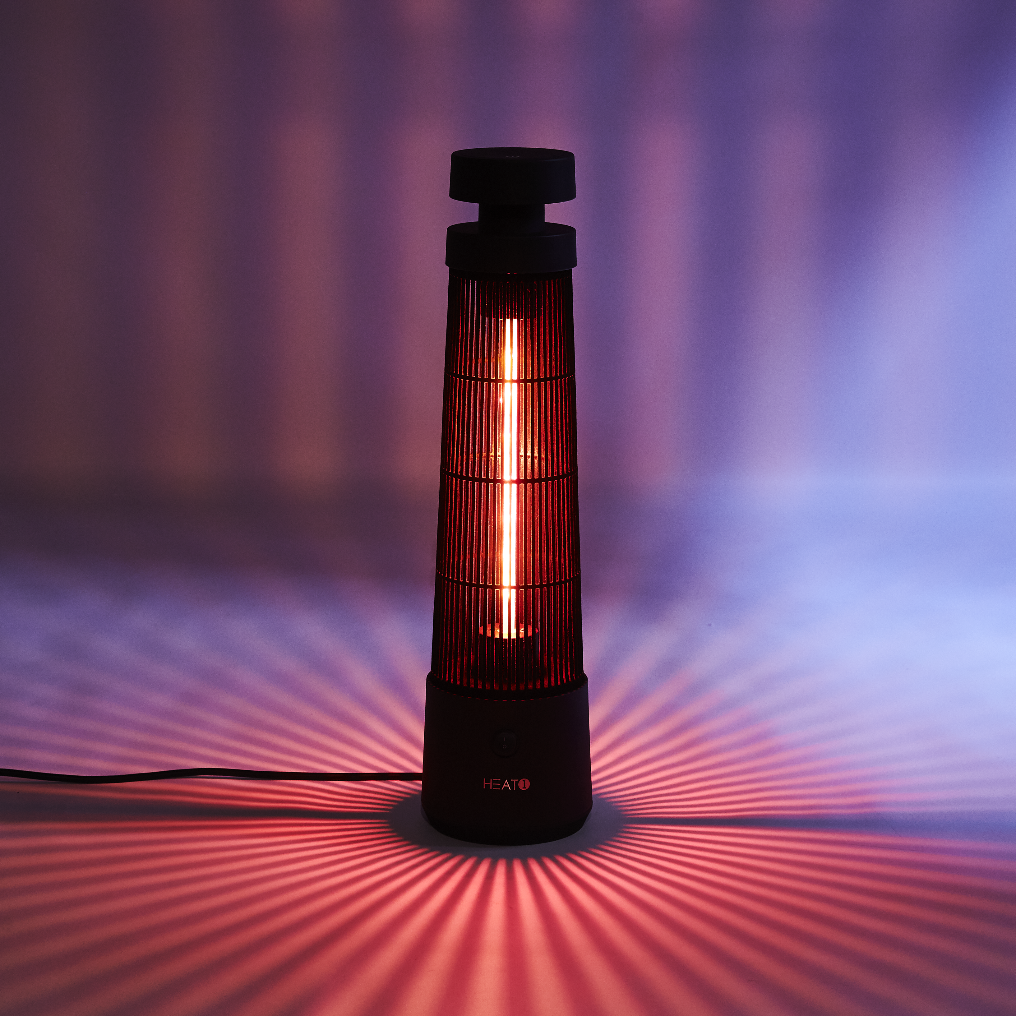HEAT1 ECO high-line terassilämmitin pöydänalusmalli "Cone" modernissa designissa, joka tekee lämmittimestä huonekalun itsessään. " Cone”-malli, puutarhapöydän alle sijoitettuna antaa täydellisen lämmön, joten voit nauttia mukavasta kesäillasta terassilla ilman että jalkojasi paleltaa. Tämä HEAT1-terassilämmitin levittää lämpöä 360 asteen kulman leveydellä lyhytaalto-, infrapuna- ja ultra low glare-tekniikalla. Kytke terassilämmitin virtaan ja se on käyttövalmis. Mallia voi helposti siirtää, joten sitä voi käyttää useissa eri paikoissa, kunhan pistorasia on saatavilla. Pohja ja yläosa on valmistettu jauhemaalatusta teräksestä ja musta putki alumiinista. Siinä on sisäänrakennettu kaatumissuojaus, mikä tarkoittaa, että virta katkeaa, jos terassilämmitin kaatuu. Virta palautuu heti, kun terassilämmitin nostetaan pystyyn. Johtoa säilytetään kätevästi terassilämmittimen pohjassa. "Cone" sisältää tyylikkään soft touch-virtapainikkeen. Suojuksen voi ostaa lisävarusteena.