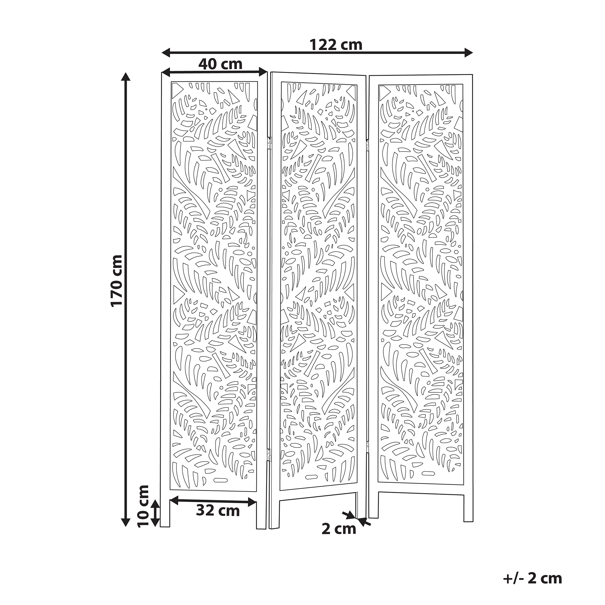 Kasvikuvioitu kokoontaitettava väliseinä. Koe kestävyyden ja modernin muotoilun yhdistelmä tällä kolmipaneelisella huoneenjakajalla. Kestävästä keisaripuusta ja MDF-levystä valmistettu kokoontaitettava tilanjakaja tarjoaa helpon säilytyksen ja täydentää puisia kalusteita hienostuneesti. Täydennä tilaa tällä nykyaikaisella kappaleella, joka tuo kotiisi sekä tyyliä että toiminnallisuutta.