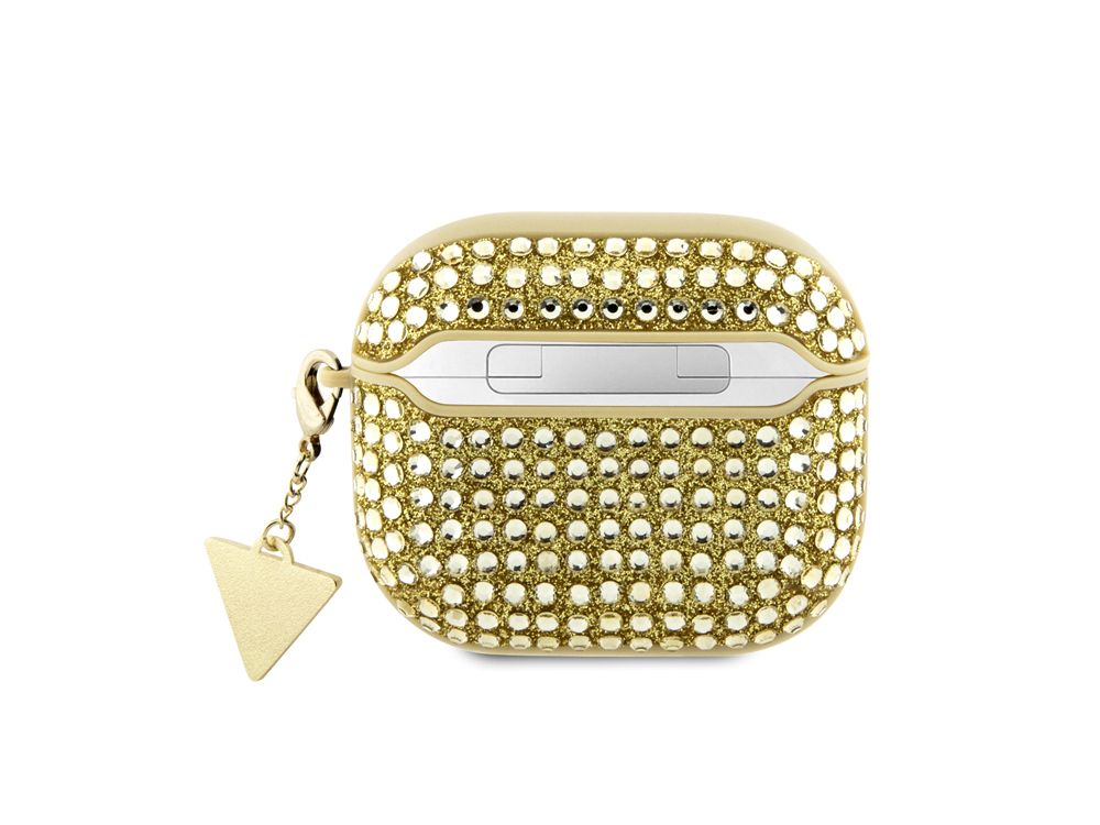 Koristele ja suojaa AirPods 3 -laitteesi tällä Guessin 4G Diamond -suojuksella. Valmistettu polykarbonaatista ja yhdistettynä satoihin strasseihin, jotka luovat mielenkiintoisen kontrastin kestävyyden ja hienostuneisuuden välille. Varustettu Charmilla, jossa on 4G Triangle -logo, joka korostaa kuulokkeitasi spontaanilla tavalla. Tämä kotelo on helppo asentaa ja pitää kuulokkeet tukevasti paikallaan.