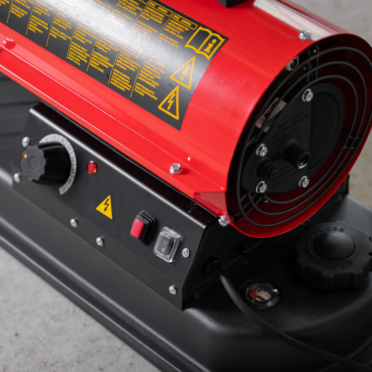 <ul><li>Säädettävä termostaatti lämpötilan näytöllä</li><li>Ruostumatonta terästä</li><li>Jännite: 220 V-240 V / 50 Hz</li><li>Lämpöteho: 10 kW</li><li>Ilmanvirtaus: 450 m³/h</li><li>Polttoaine: Diesel tai valopetroli</li><li>Käyntiaika tankilla: 12 h</li><li>Tankin tilavuus: 12 l</li><li>Kulutus: 1 l/h</li><li>Ulostulo lämpötila: 390 astetta</li><li>Automaattinen sammutus polttoaineen loppuessa</li><li>Polttoainemittari</li><li>Vesitiiviys IPX4</li><li>Paino: 10 kg</li><li>Tuotteen mitat: 66 x 26 x 38 cm</li><li>Pakkauksen mitat: 69 x 32,5 x 41 cm</li><li>Takuu: 12 kk</li></ul>