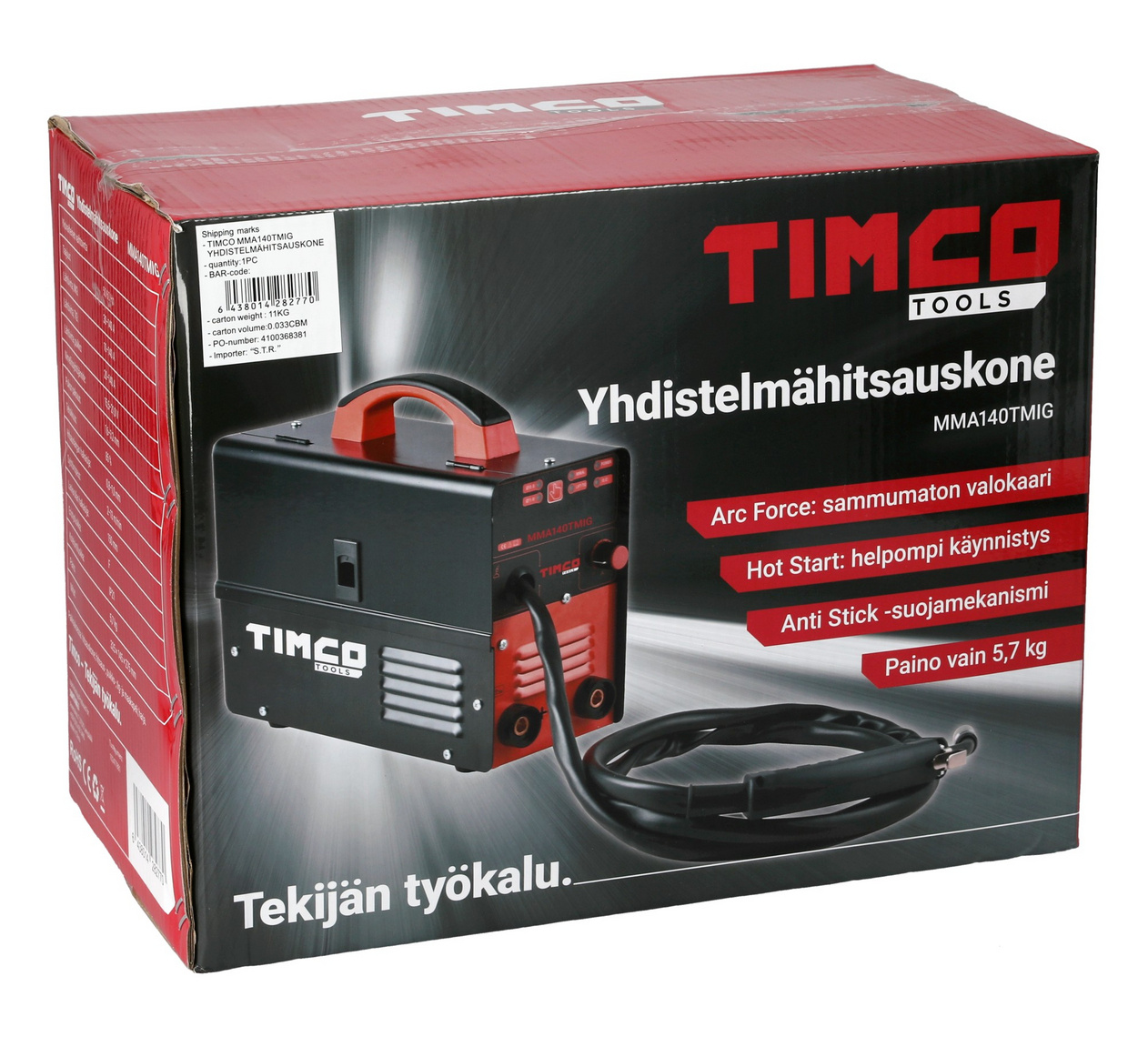 Timcon MMA140TMIG on helppokäyttöinen IGBT-teknologialla varustettu täytelanka MIG, TIG ja puikkohitsauslaite, joka soveltuu täydellisesti harrastuskäyttöön. Ammattikäyttöön suosittelemme suojakaasullista MIG-hitsauslaitetta kuten iT315MIG ja TIGillä paljon hitsatessa tai alumiinia hitsatessa TIG250WSME.