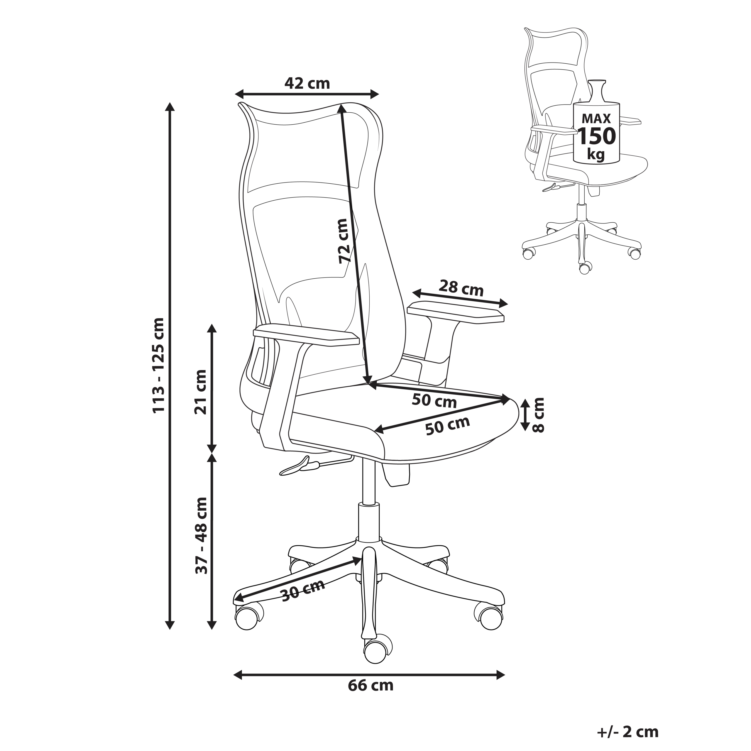 Moderni toimistotuoli korkealla selkänojalla. Tämä toimistotuoli on verhoiltu hengittävällä verkkokankaalla ja istuinosa on täytetty ruiskuvaletulla vaahtomuovilla, minkä ansiosta se tarjoaa täydellisen yhdistelmän mukavuutta ja käytännöllisyyttä. Pneumaattinen istuinkorkeuden säätö ja korkea selkänoja kallistusmekanismilla mahdollistavat istuma-asennon mukauttamisen ja helpottavat selän rasitusta. Yhdessä 360 astetta kääntyvän istuimen ja sulavasti rullaavien pyörien kanssa nämä ominaisuudet takaavat sekä ergonomisen tuen että vaivattoman liikkumisen työpisteen ympärillä.