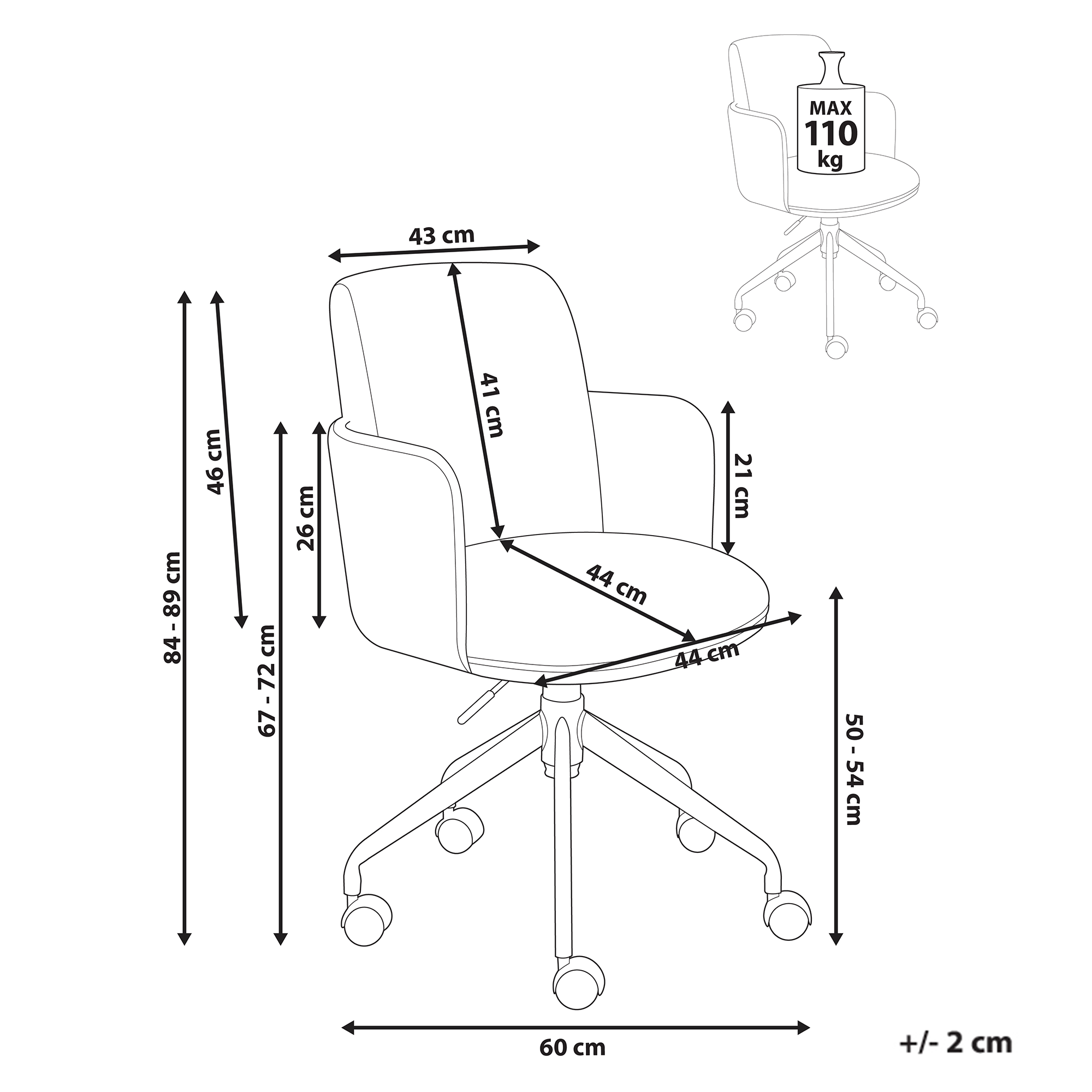 Korkeus: 84-89 cm