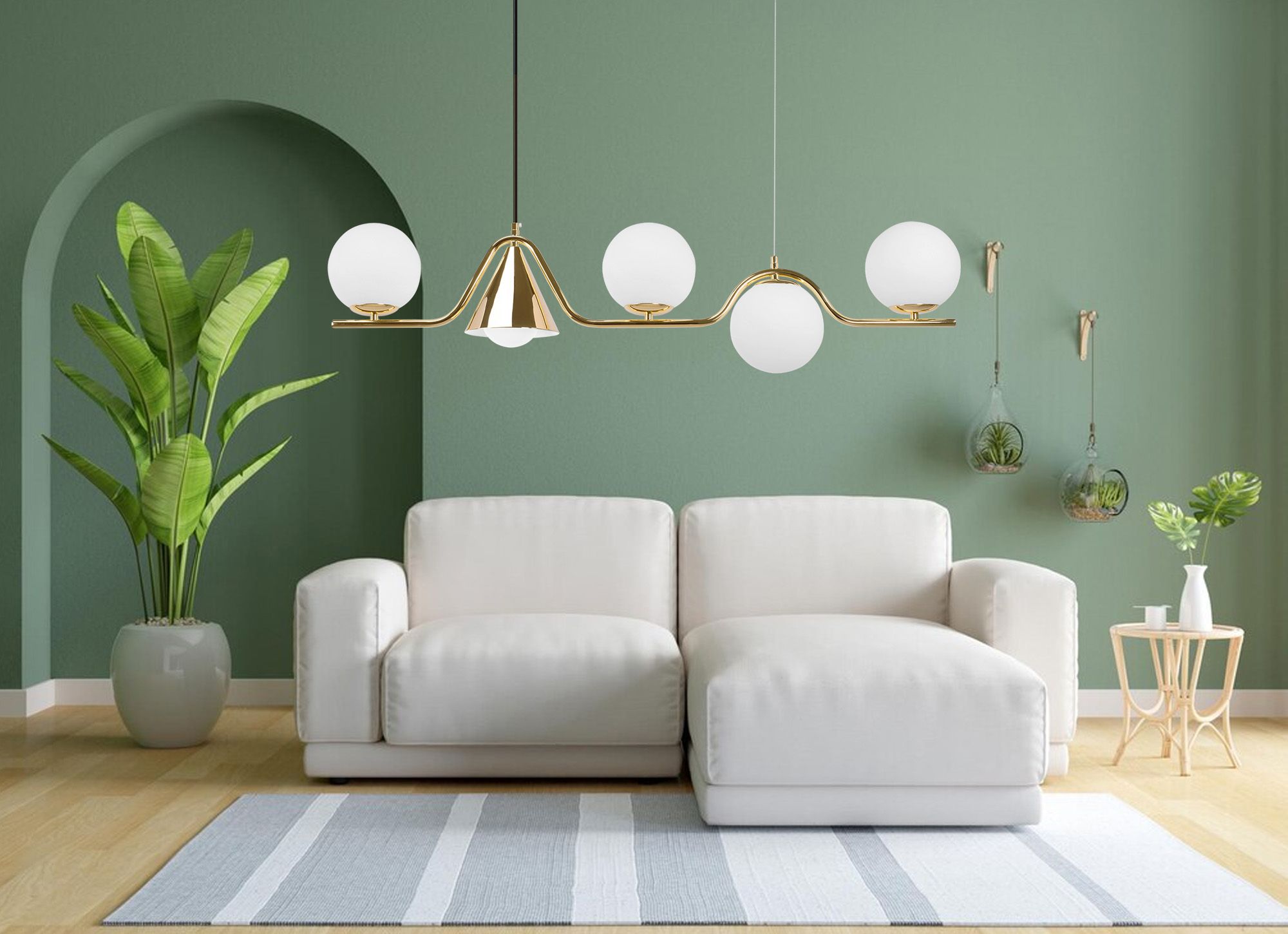 Ajaton ja elegantti riippuva kattovalaisin, joka toimii näyttävänä valonlähteenä huoneessa. Valmistettu korkealaatuisista materiaaleista, se sopii täydellisesti ruokapöydän, olohuoneen tai ruokailutilan yläpuolelle, tuoden tilaan sekä käytännöllisyyttä että koristeellisuutta.