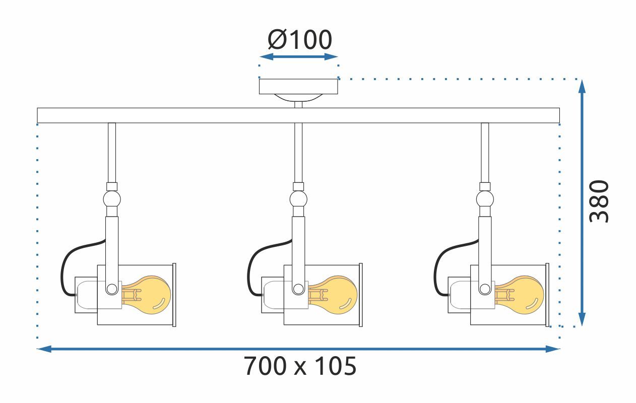 TOOLIGHT riippuva kattovalaisin APP487-3C musta, 70x70x38cm