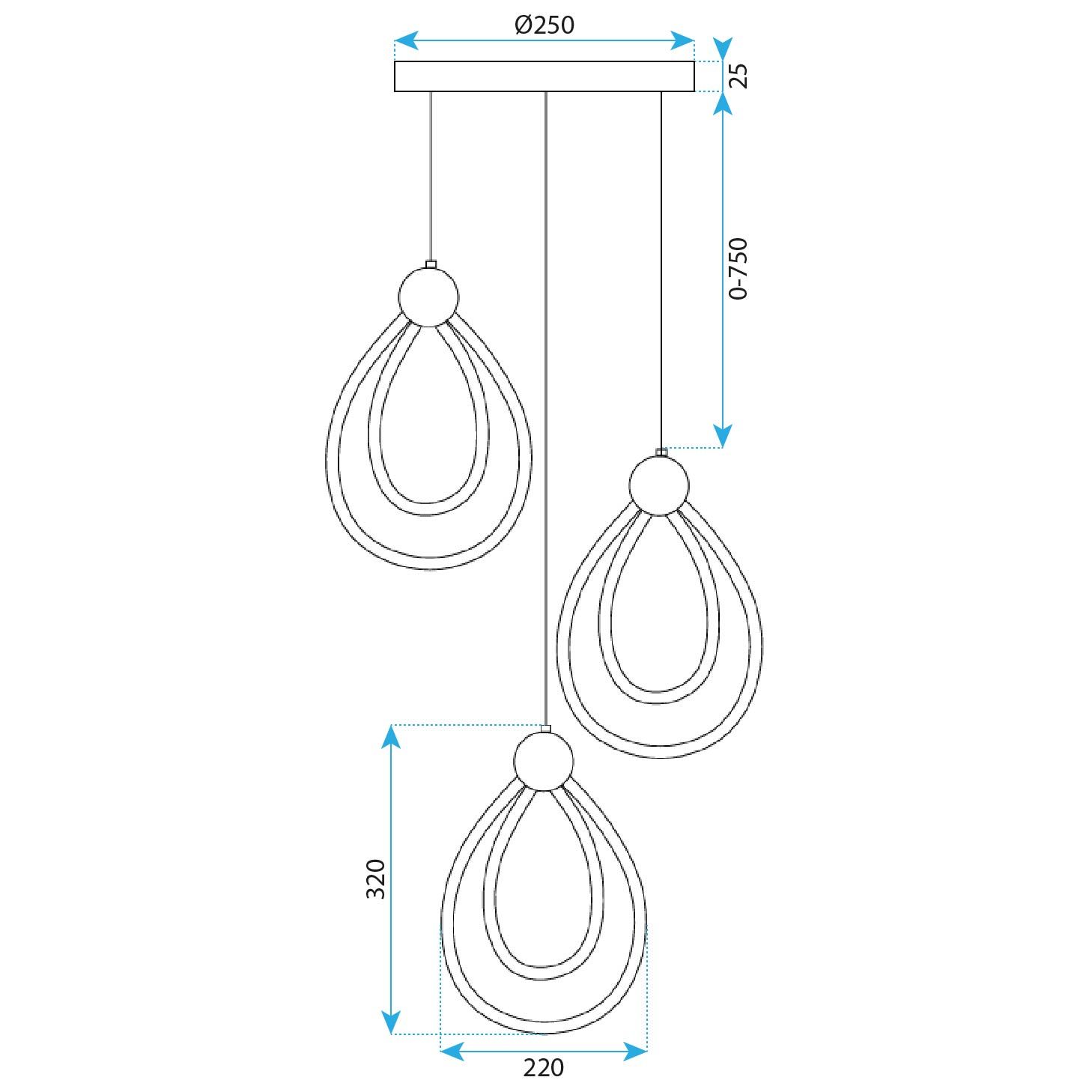 TOOLIGHT riippuva kattovalaisin LED G022-3CPR musta, 46,5x29x46,5cm
