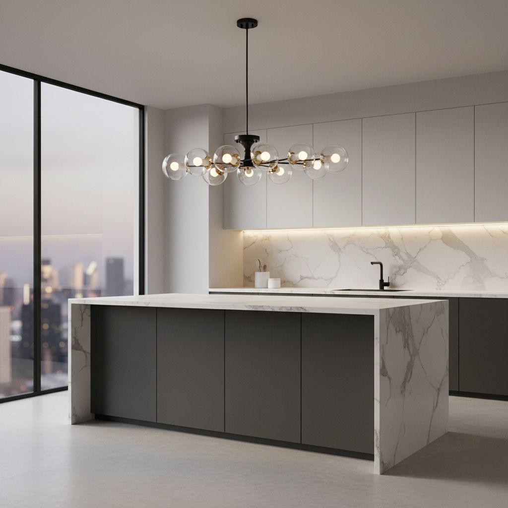 Ajaton ja tyylikäs riippuvalaisin, joka sopii monenlaisiin sisustuksiin tyylikkäänä valonlähteenä. Valmistettu laadukkaista materiaaleista, se näyttää upealta esimerkiksi ruokapöydän, keittiösaarekkeen tai olohuoneen yläpuolella, lisäten tilaan ainutlaatuista ilmettä.