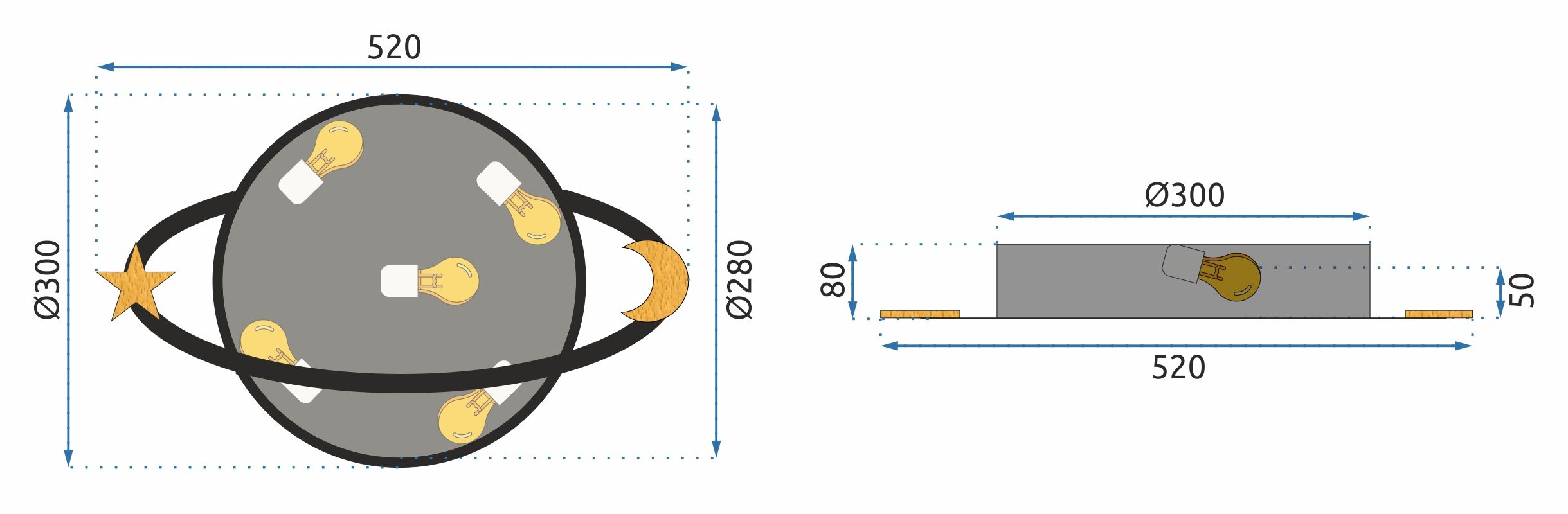 TOOLIGHT kattovalaisin APP866-C MOON musta, 30X52X5CM