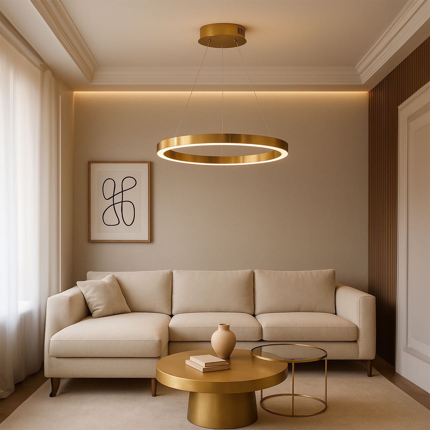 Ajaton ja tyylikäs riippuvalaisin, joka sopii monenlaisiin sisustuksiin tyylikkäänä valonlähteenä. Valmistettu laadukkaista materiaaleista, se näyttää upealta esimerkiksi ruokapöydän, keittiösaarekkeen tai olohuoneen yläpuolella, lisäten tilaan ainutlaatuista ilmettä.