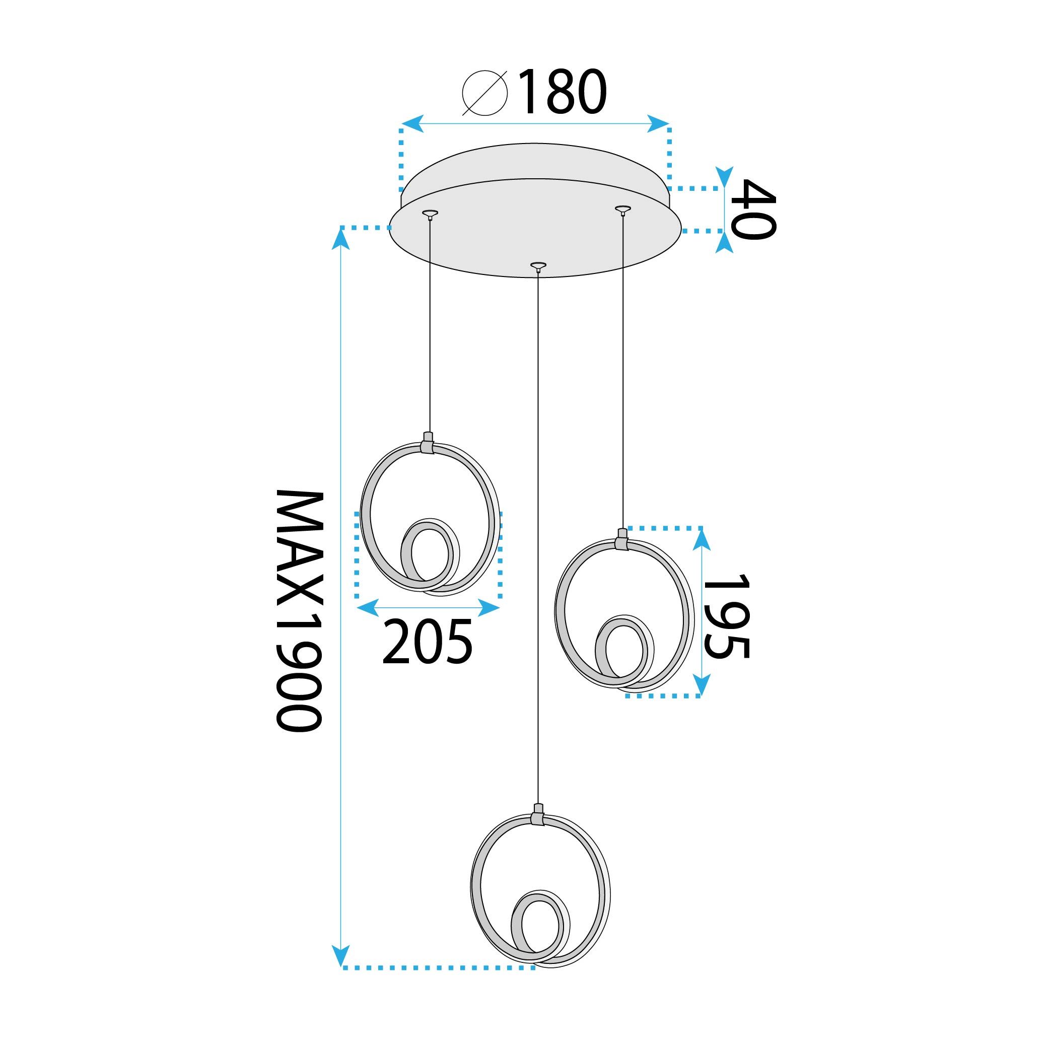 TOOLIGHT riippuvalaisin LHJ095-3CP valkoinen, kulta, 20,5X20,5X195CM