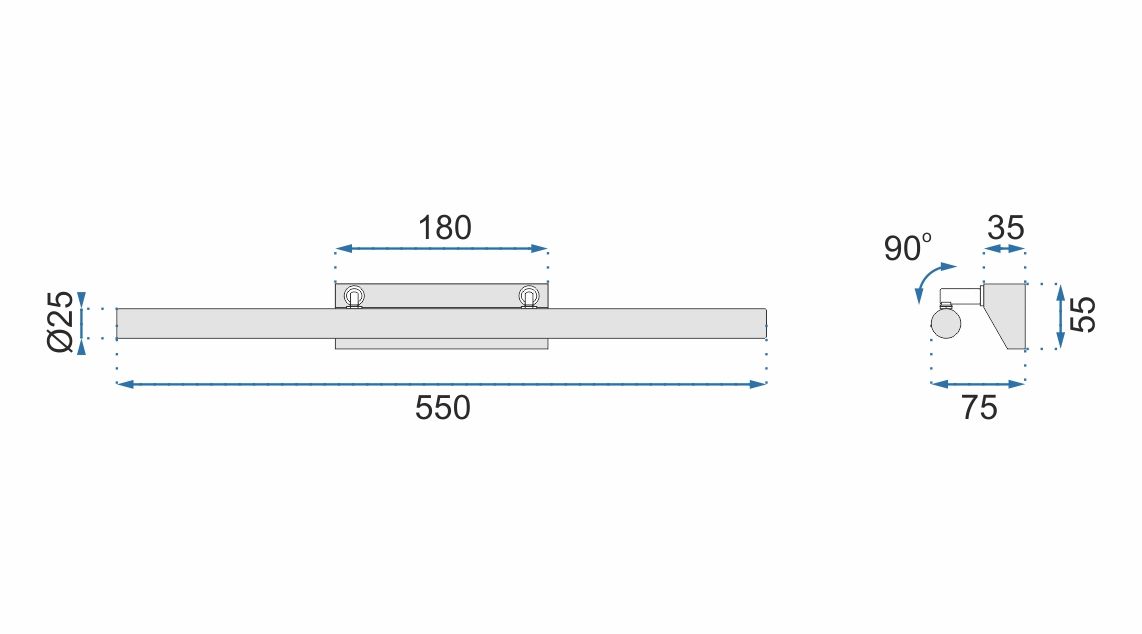 Ajaton ja elegantti seinävalaisin, joka sopii täydellisesti huoneen valonlähteeksi. Valmistettu korkealaatuisista materiaaleista, se toimii erinomaisesti taulujen, peilien tai muiden esineiden valaisemiseen.