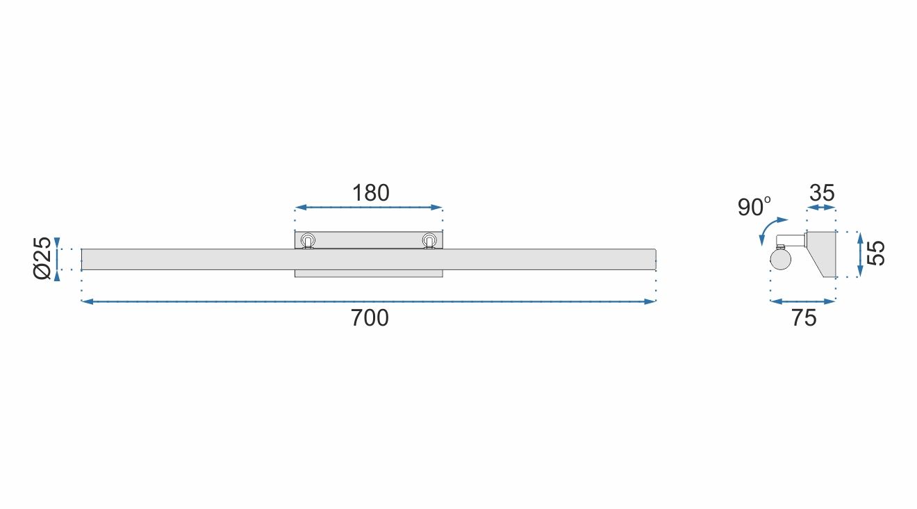 Ajaton ja elegantti seinävalaisin, joka sopii täydellisesti huoneen valonlähteeksi. Valmistettu korkealaatuisista materiaaleista, se toimii erinomaisesti taulujen, peilien tai muiden esineiden valaisemiseen.