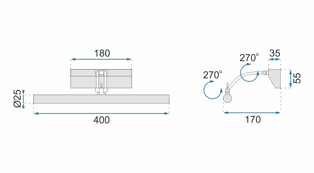 Ajaton ja elegantti seinävalaisin, joka sopii täydellisesti huoneen valonlähteeksi. Valmistettu korkealaatuisista materiaaleista, se toimii erinomaisesti taulujen, peilien tai muiden esineiden valaisemiseen.