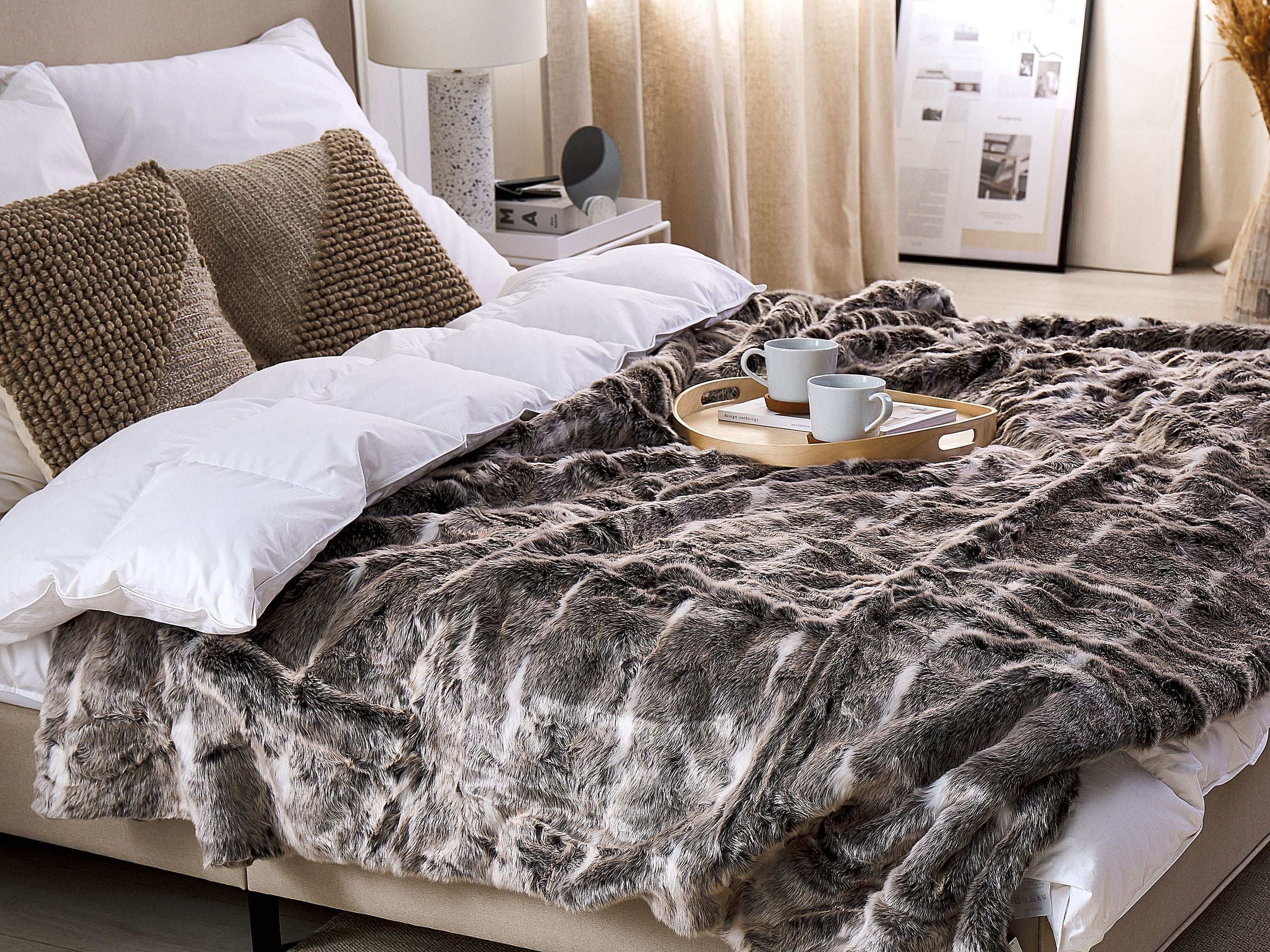 Pehmeä ja pörröinen huopa. Tämä torkkupeitto on täydellinen lisä mihin tahansa tilaan, sillä se tarjoaa lämpöä ja rikastuttaa tilaa rustiikkisella ja boho-henkisellä tunnelmalla. Kestävästä ja pitkäikäisestä ruskean sekä valkoisen sävyisestä akryylistä valmistetussa peitossa on pehmeä, pörröinen tekstuuri, mikä tekee siitä erittäin mukavan tuntuisen. Kokonsa ansiosta se sopii erinomaisesti olohuoneen sohvalle lepohetkiä varten tai makuuhuoneen sängylle näyttäväksi päiväpeitoksi.