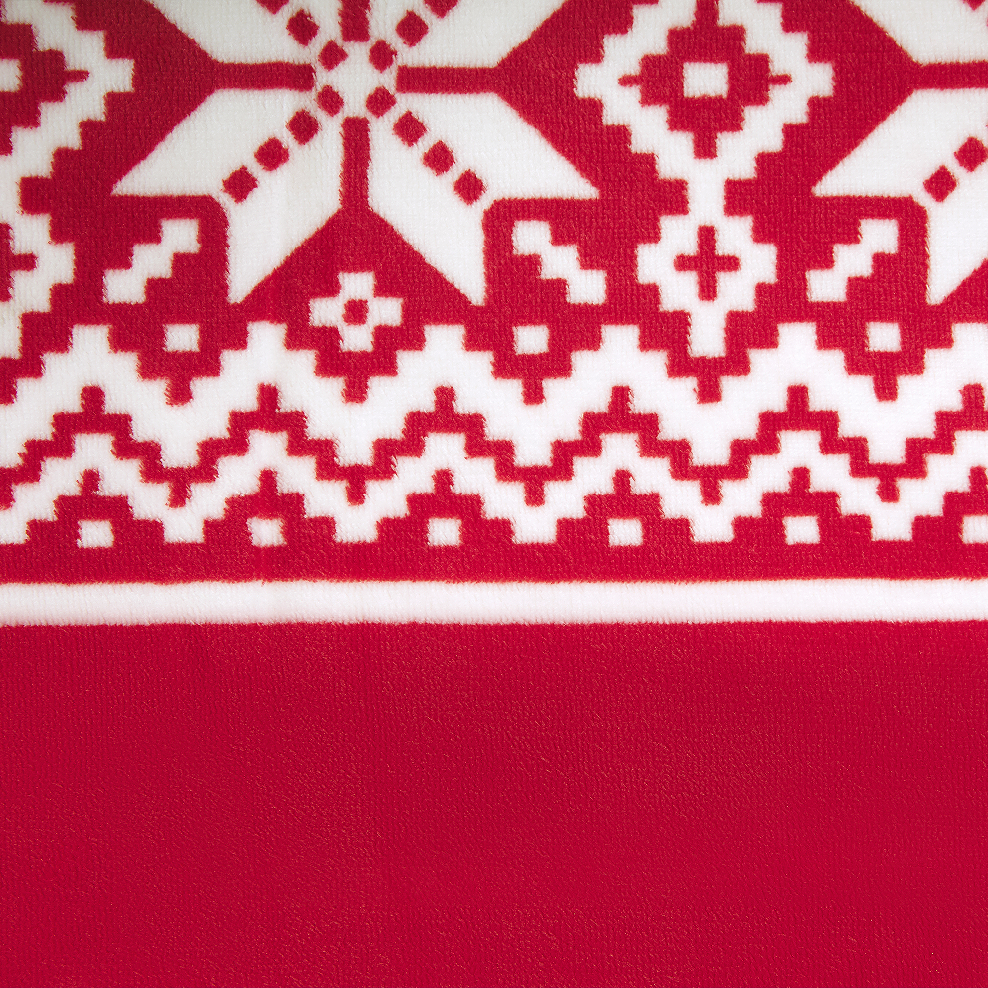 Pehmeä ja pörröinen viltti jouluisella kuvioinnilla. Tuo talven hurmaavaa tunnelmaa kotiisi suloisilla aksenteilla ja koristeilla, kuten tällä pehmeällä ja pörröisellä torkkupeitolla. Miellyttävän tuntuisesta flanellikankaasta valmistetun peiton toista puolta koristaa punainen geometrinen kuvio, jonka tuo klassinen ilme mieleen jouluisen villapaidan, kun taas valkoisen puolen tekstuuri muistuttaa turkista. Torkkupeiton avulla voit heittää hyvästit kylmille illoille, asetitpa sen sitten sohvalle tai sängylle.