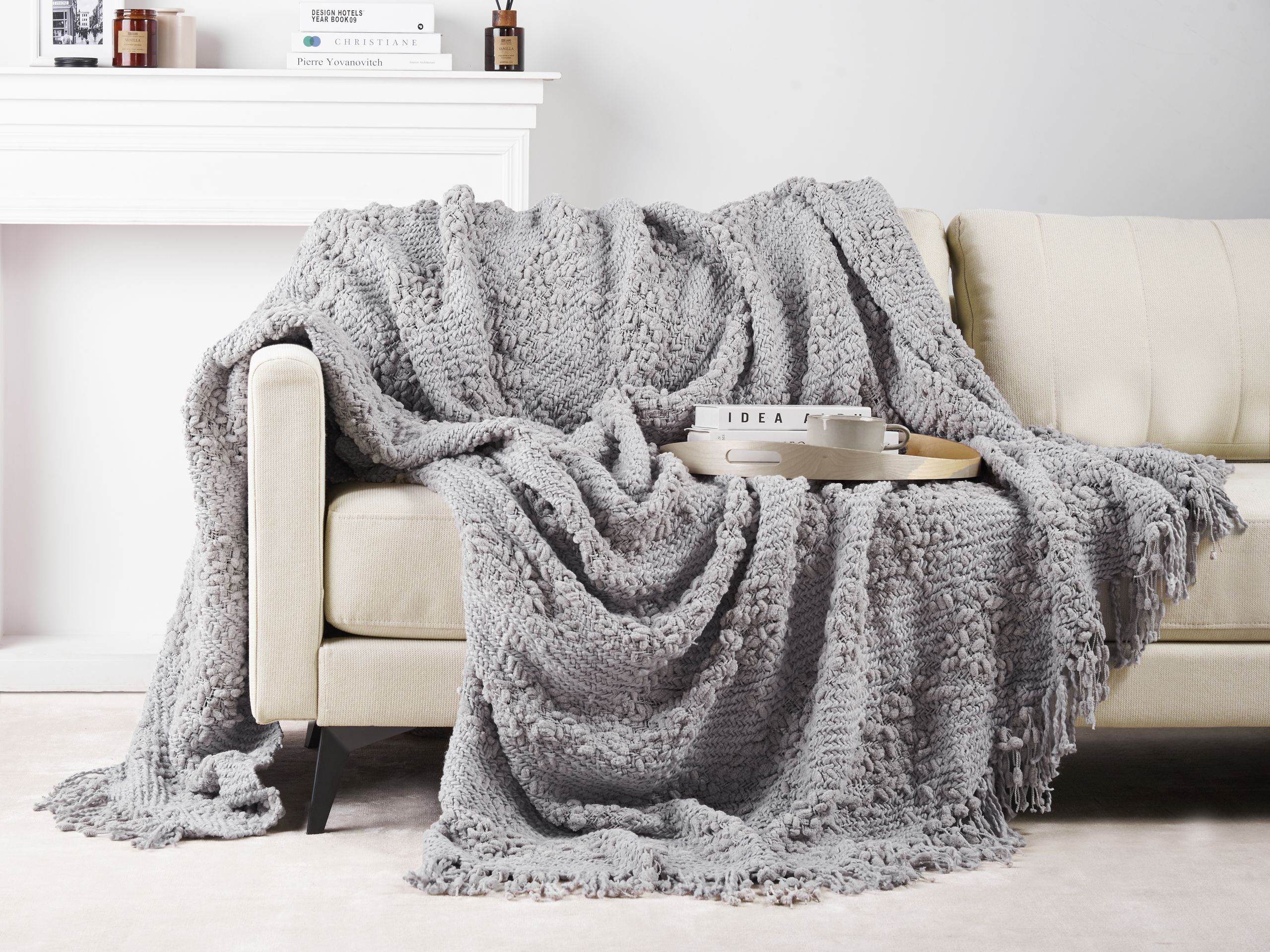 Kudottu torkkupeitto hapsuilla. Tämä pehmeästä puuvillasta ja akryylistä valmistettu torkkupeitto on ehdoton lisä jokaiseen kodikkaaseen kotiin. Sen kudottu, silmukkainen tekstuuri ja leikkisät hapsut antavat peitolle boho-ilmettä. Torkkupeitto pitää olon lämpimänä ja mukavana ympäri vuoden, käytettiinpä sitä sitten sohvalla loikoillessa tai sängyn peitteenä lisälämmikkeenä.