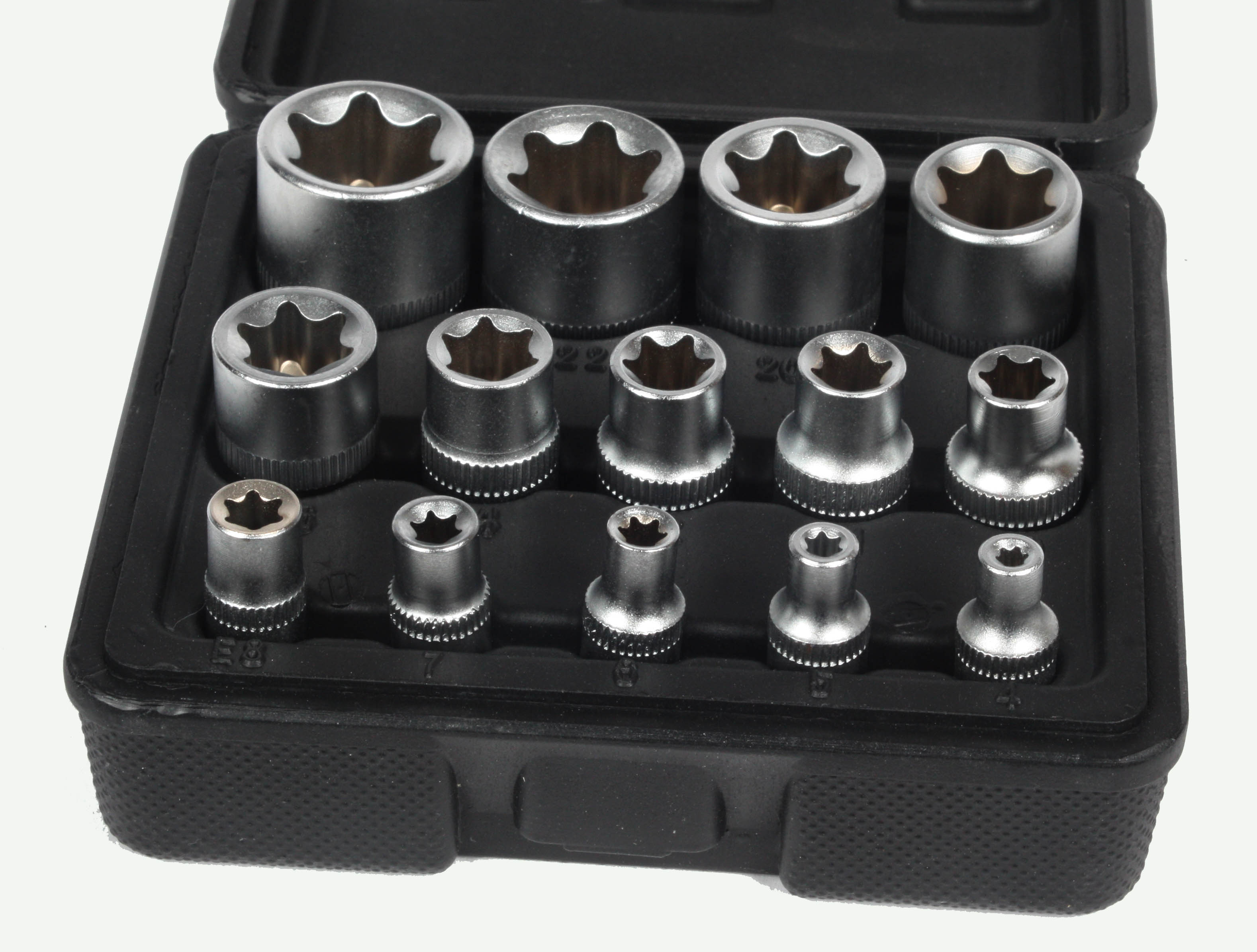 Torx-hylsysarja 1/2", 3/8", 1/4" E4-E24 14-osainen