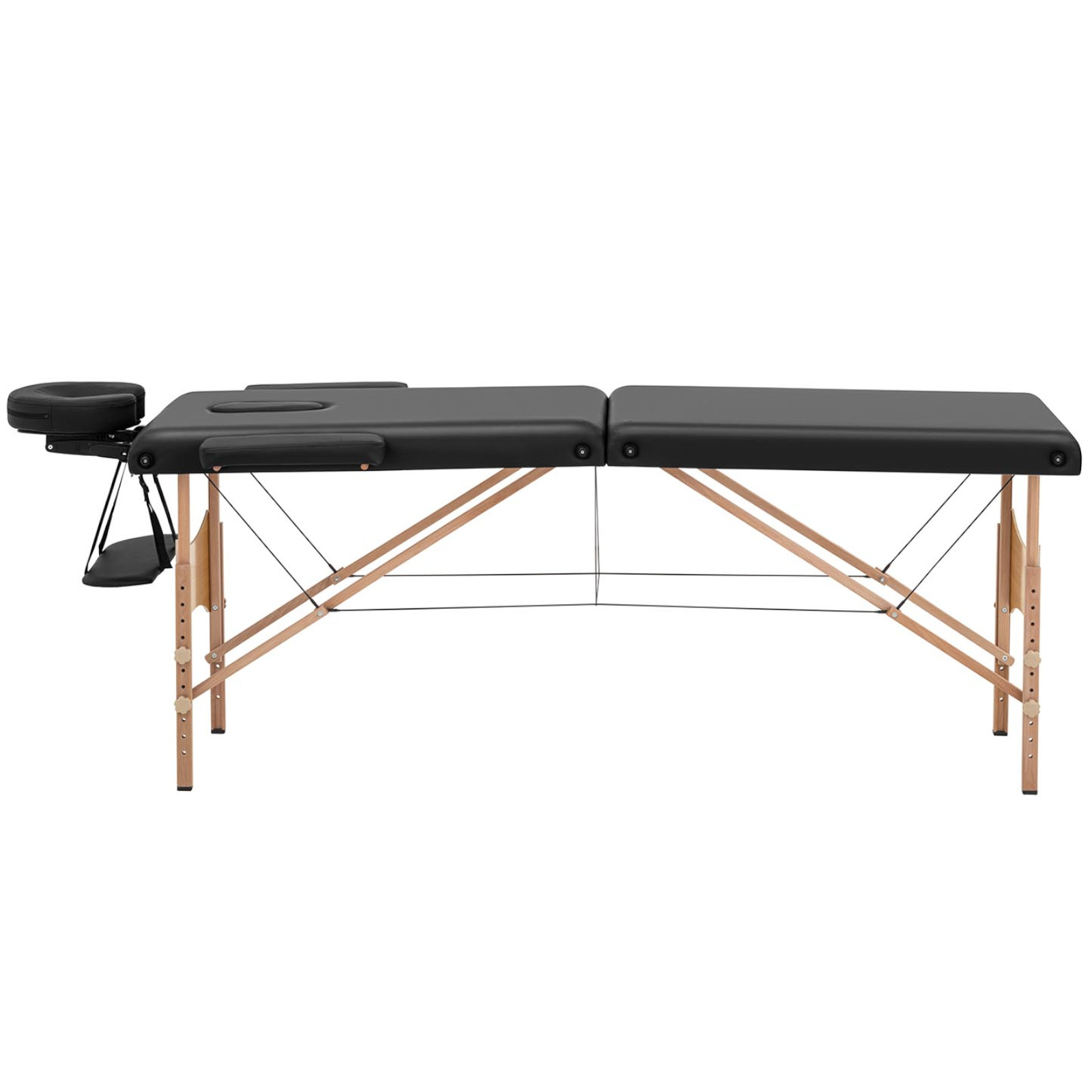 Toulouse Black kannettava kokoontaitettava puinen hierontasänky, jopa 227 kg, musta