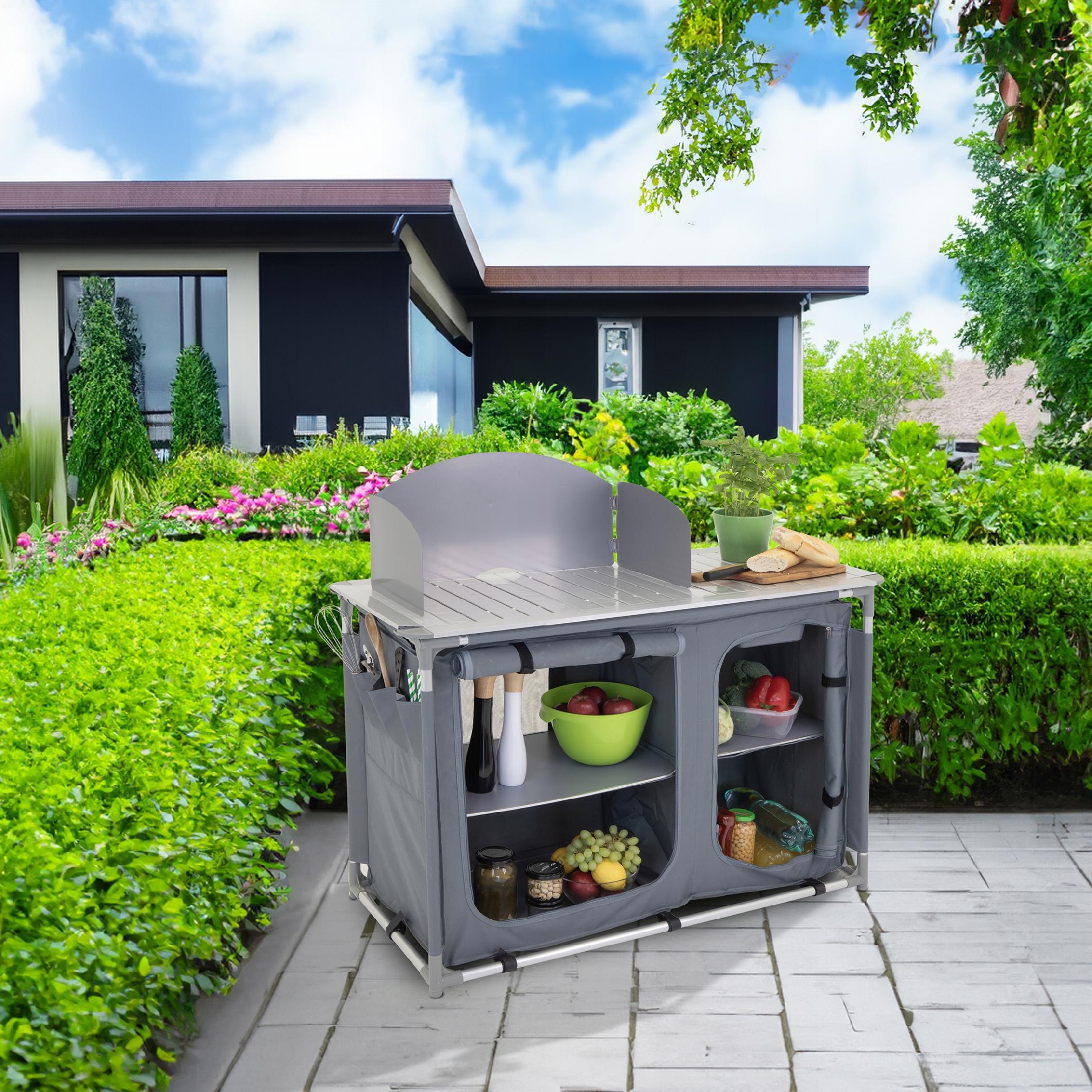 Helppo kuljetus: Koko keittiö on suunniteltu taittumaan käteväksi laukkuun, joten sitä on helppo kuljettaa ja säilyttää erityisesti sesongin ulkopuolella.