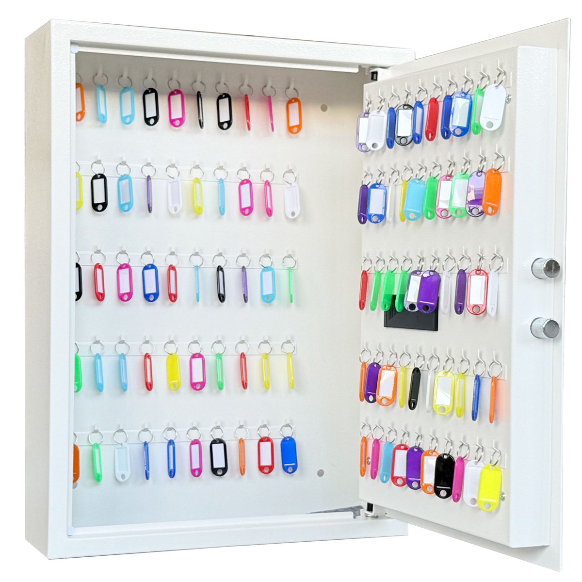 <li><strong>Korkea kapasiteetti:</strong> Turvallisesti tilaa jopa 100 avaimelle.</li>