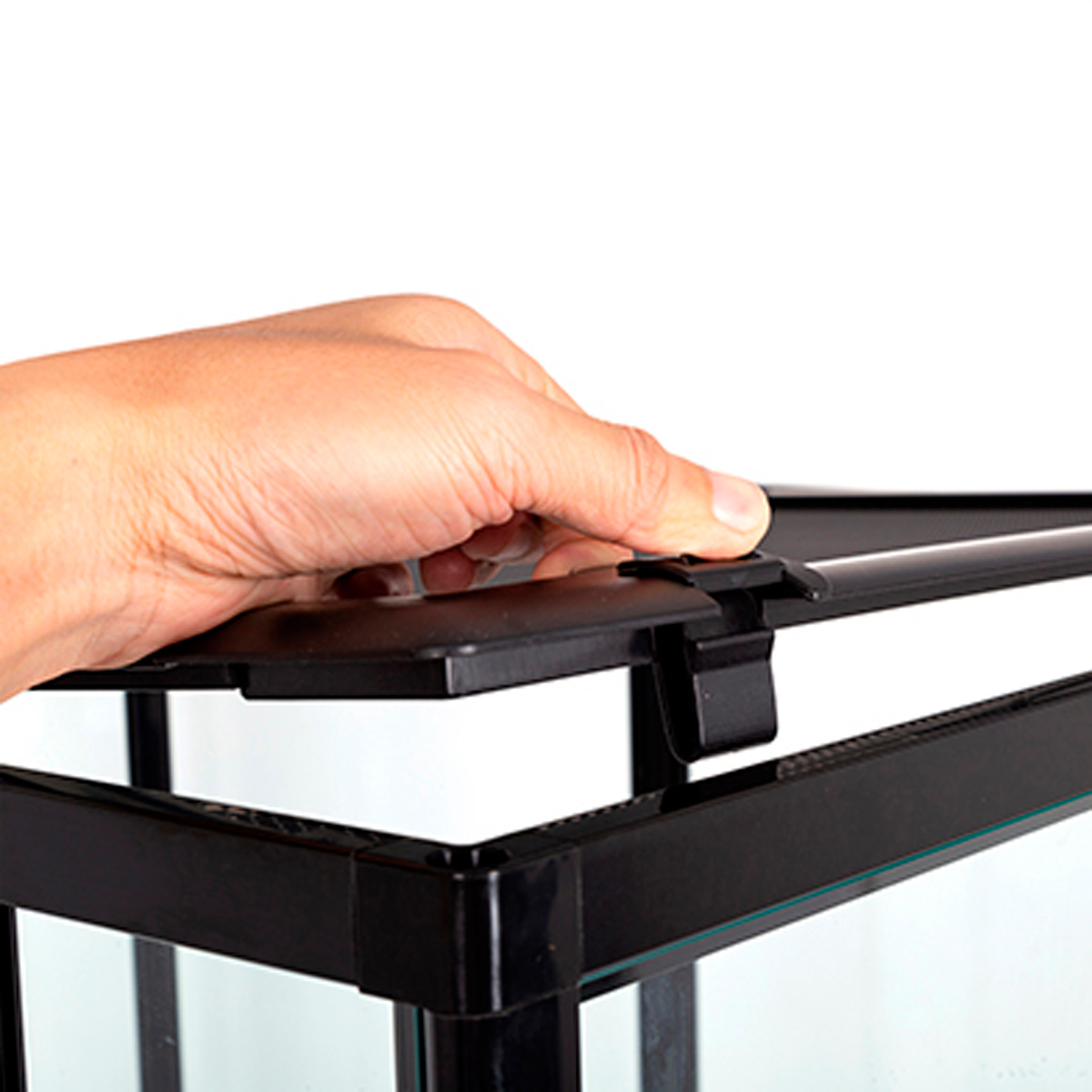 Läpinäkyvät lasiovet mahdollistavat vaivattoman tarkkailun, kun taas musta kehys antaa terraariolle modernin ja viimeistellyn ilmeen. Huolellisesti suunniteltu rakenne ja kattava lisävarustepaketti tekevät kokoamisesta helppoa ja sujuvaa.