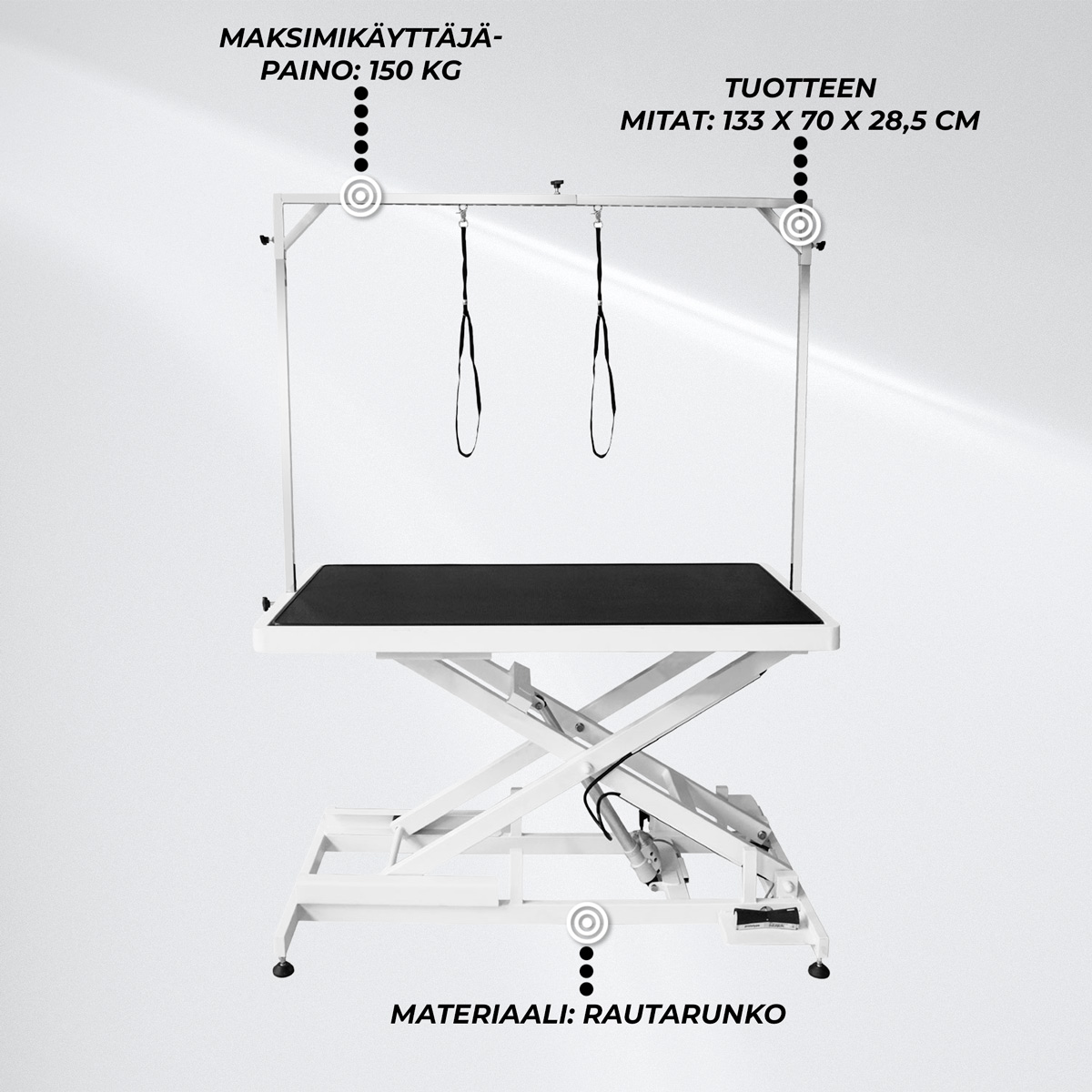 150 kg kantavuus: varma valinta myös suurikokoisille koirille ja vaativiin hoitotoimenpiteisiin.