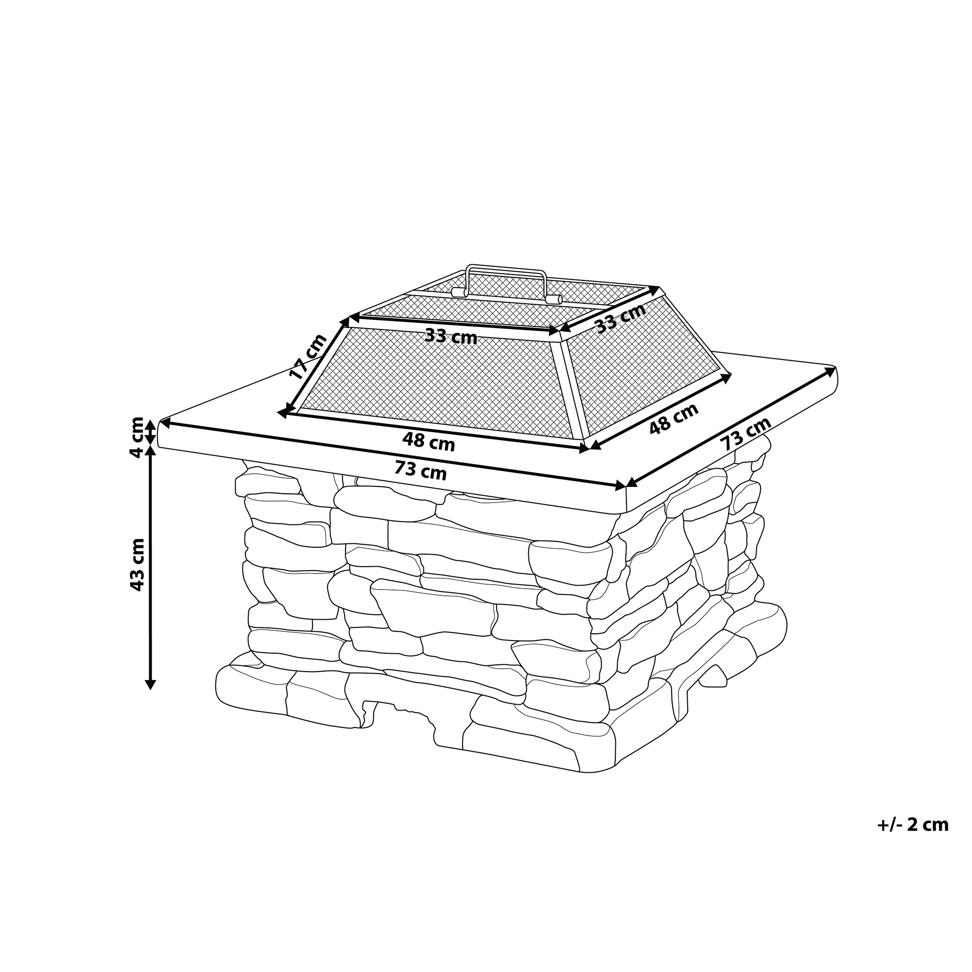 Perinteinen neliskulmainen tulisija. Tässä monikäyttöisessä tulisijassa yhdistyvät klassinen nuotion ilme ja grilllaustoiminto. Korkeaa lämpöä kestävästä magnesiumoksidista valmistettu tulisija sopii erinomaisesti lämmönlähteeksi viileinä iltoina ja pidentää puutarhassa tai terassilla vietettävää aikaa. Luonnollinen liekki luo miellyttävän tunnelman ja pehmeän valaistuksen, kun taas mukana tulevan teräksisen grilliritilän avulla voit vaivattomasti valmistaa aterioita – grillatuista vihanneksista erilaisiin liharuokiin. Settiin kuuluu myös kipinäsuoja, joka auttaa estämään hiilloksen karkaamisen, sekä hiilihanko puiden ja tulen turvallista hallintaa varten. Tämä käytännöllinen ratkaisu on tarkoitettu heille, jotka arvostavat sekä nuotion tunnelmaa että grillin toiminnallisuutta ilman kaasua tai sähköä.