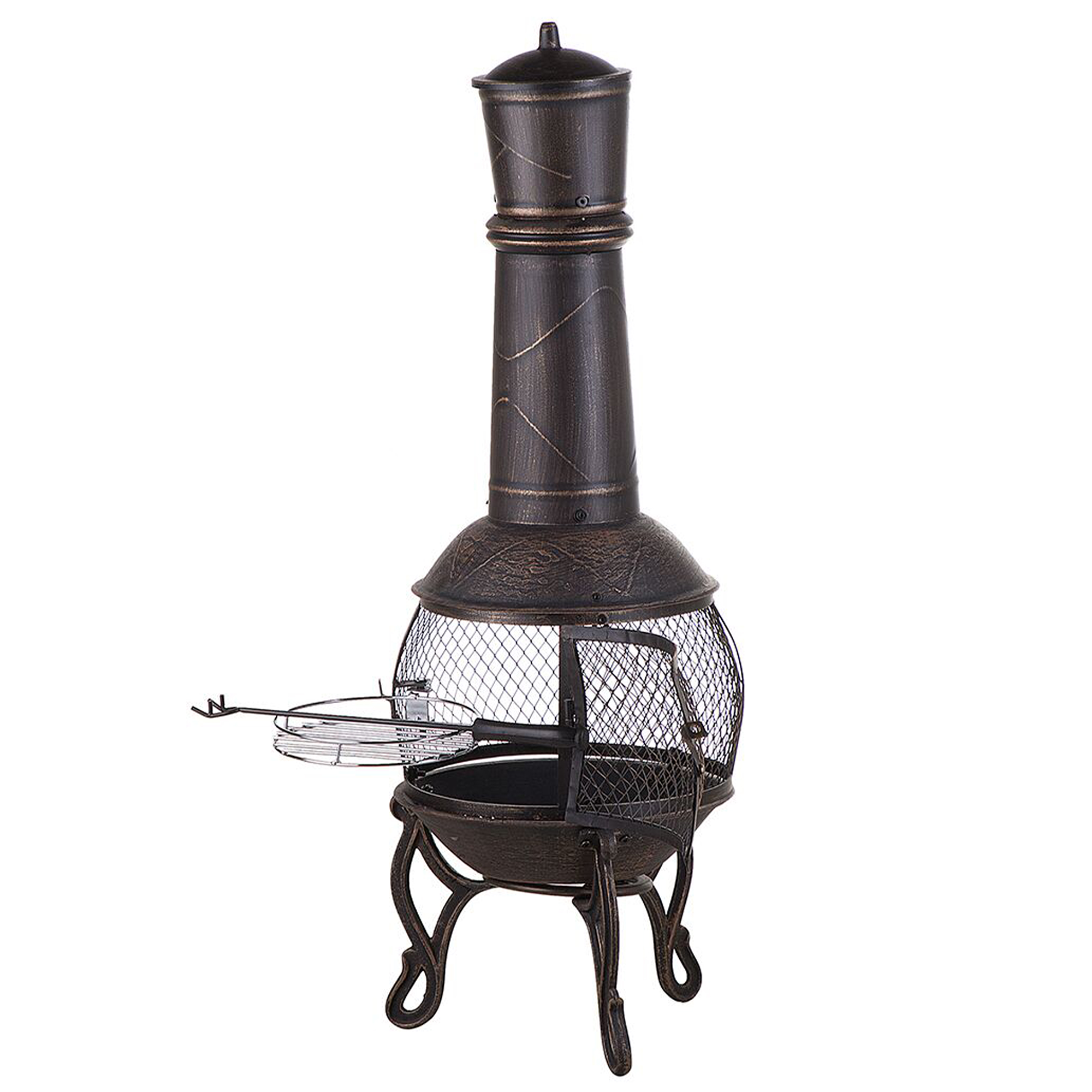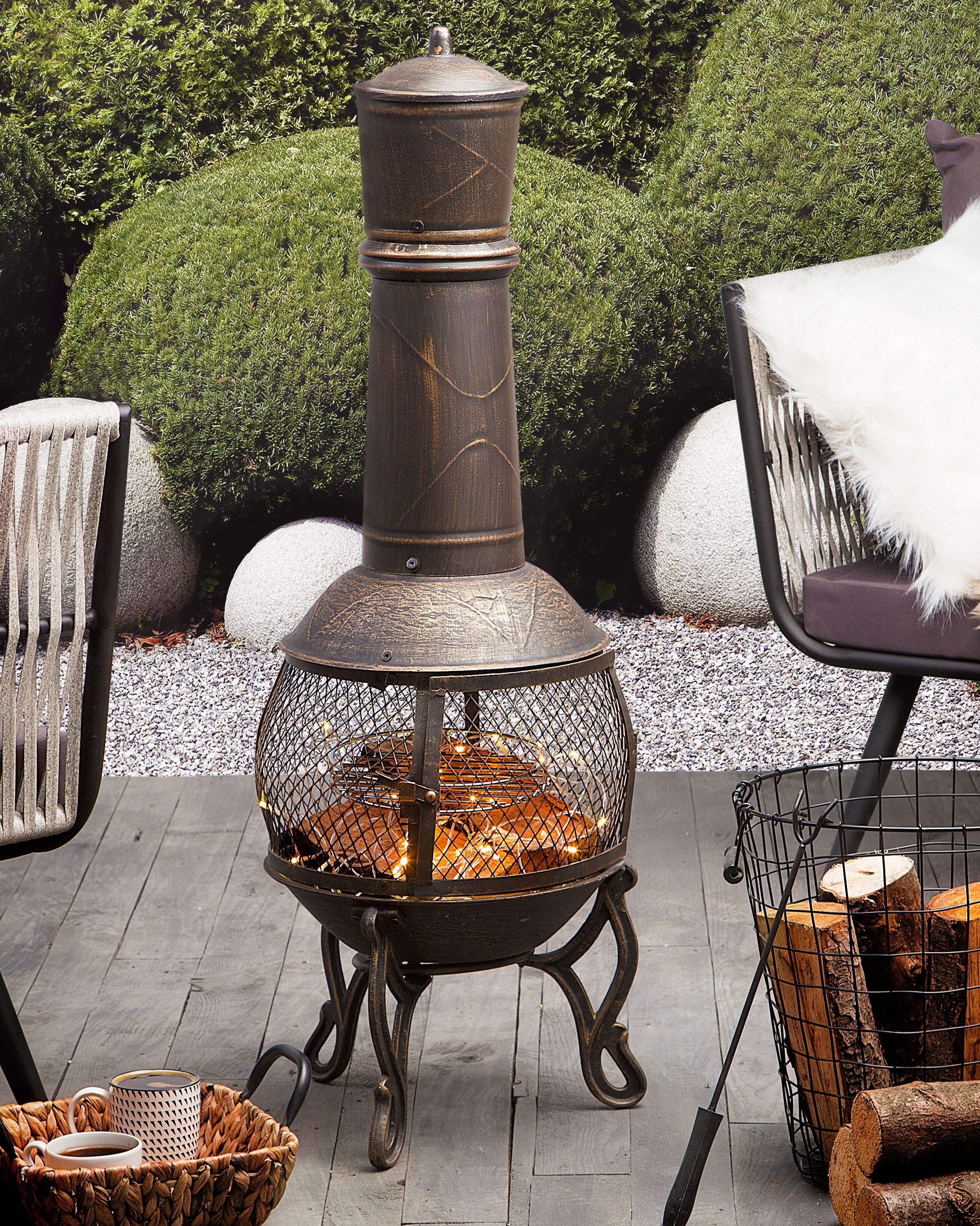 Hurmaava pyöreä tulisija. Tässä tulisijassa yhdistyvät lämmitys- ja grillaustoiminnot. Se ei ainoastaan tarjoa lämpöä viileinä iltoina, vaan luo myös keskeisen paikan sosiaalisille kokoontumisille, ruoanlaitolle ja rentoutumiselle. Mukana tulevan grilliritilän ansiosta se toimii vaihtoehtona perinteiselle grillille – ihanteellinen vihannesten, makkaroiden tai leivän valmistukseen. Jauhemaalattu teräsrunko kestää korkeita lämpötiloja, ja vakaan rakenteen ansiosta voit polttaa sekä polttopuita että hiiltä. Integroitu savupiippu auttaa ohjaamaan savun ylöspäin, mikä parantaa ilmankiertoa ja käyttömukavuutta. Kompaktin kokonsa ansiosta se sopii erilaisille terasseille ja puutarhoihin.