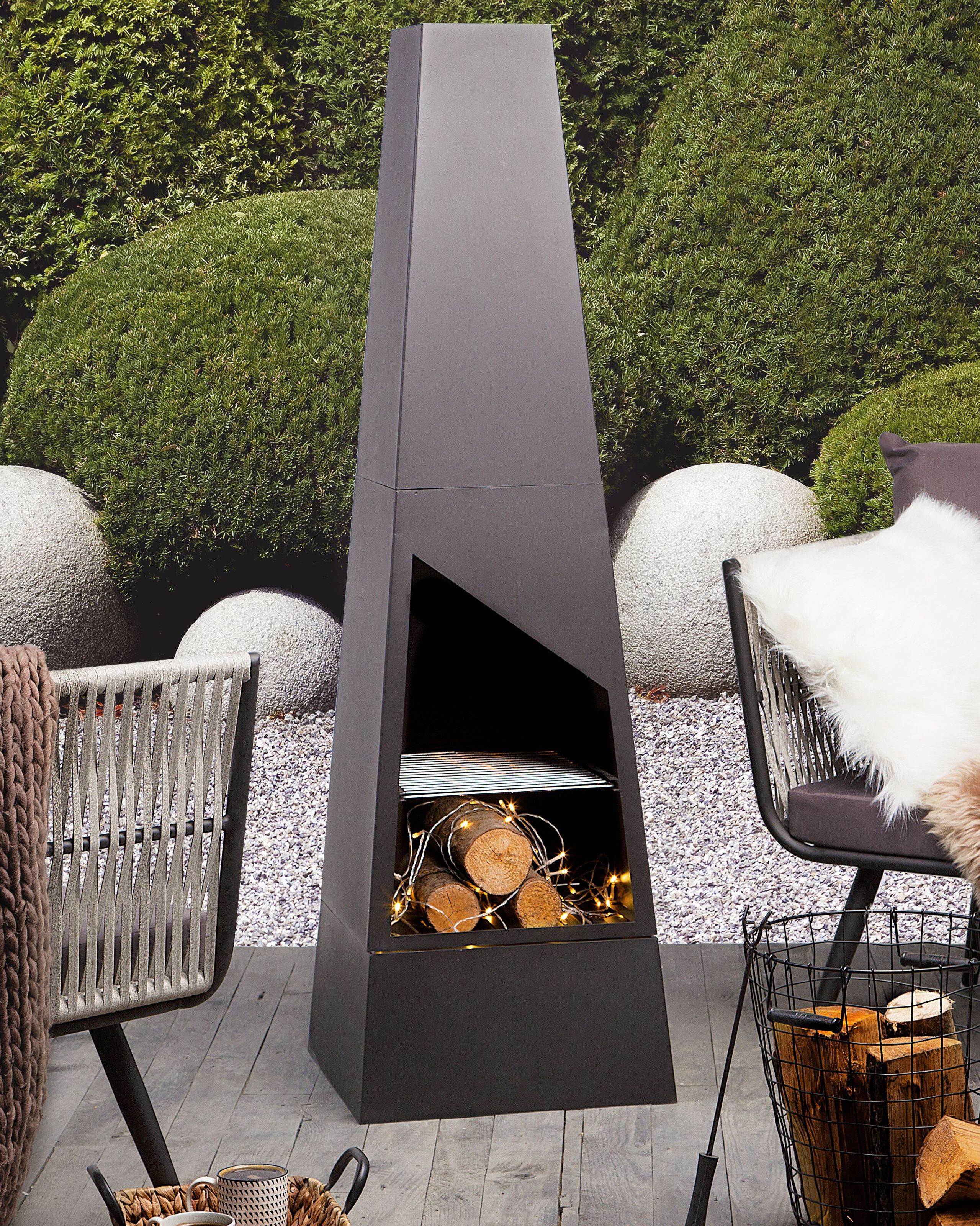 Moderni tornin mallinen tulisija. Tämä savupiipun muotoinen tulisija tarjoaa enemmän kuin vain näyttävän visuaalisen aksentin puutarhaan tai terassille – lisätarvikkeidensa ansiosta se on toimiva tulisija, joka tuo viihtyisän tunnelman ja mahdollistaa ruoanlaiton ulkona. Laadukkaasta teräksestä valmistettu tulisija kestää sekä korkeita että matalia lämpötiloja, ja se on rakennettu kestämään useita kausia säännöllistä käyttöä sekä tarjoamaan miellyttävää lämpöä kylminä iltoina. Lisäksi se sisältää kaikki olennaiset tarvikkeet ulkogrillausta varten, kuten grilliritilän, jolla voit kypsentää ruokaa suoraan liekkien päällä ja kätevän tuhka-astian, joka on helppo puhdistaa jokaisen käytön jälkeen. Grillaatpa sitten vihanneksia, paistat makkaraa tai vain nautit aidon puutulen tunnelmallisesta hehkusta, tämä tulisija sopii täydellisesti pitkiin ulkotilaisuuksiin.