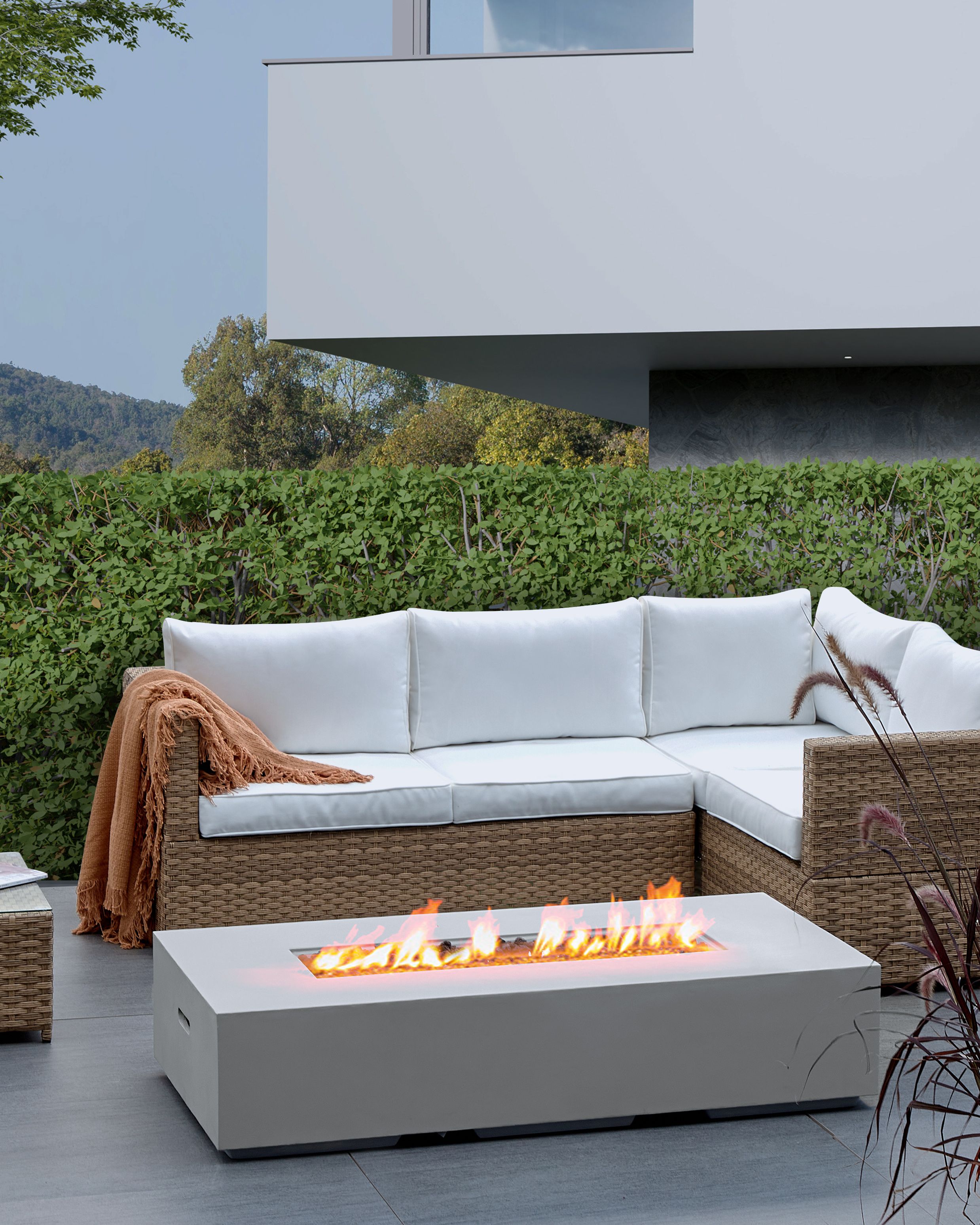 Moderni pyöreä tulisija. Tee puutarhastasi viihtyisä ja lämmin tila tämän modernin tulisijan avulla. Se on suunniteltu puutarhan tai terassin toiminnalliseksi keskipisteeksi ja sopii täydellisesti viileisiin kesäiltoihin. Tulisija on valmistettu kestävästä lasikuitubetonista ja ruostumattomasta teräksestä, mikä takaa pitkäikäisen kestävyyden sekä kestävyyden halkeilua, tulta, kosteutta ja muuttuvia sääolosuhteita vastaan. Koska tulisija toimii propaanikaasulla, se ei tuota savua tai tuhkaa ja tarjoaa puhtaasti palavan vaihtoehdon puulle. Sen vakaa rakenne mahdollistaa turvallisen käytön, ja leveän muotonsa ansiosta sen ympärille on helppo sijoittaa tuoleja perhekokoontumisia tai pieniä ulkoilmajuhlia varten.