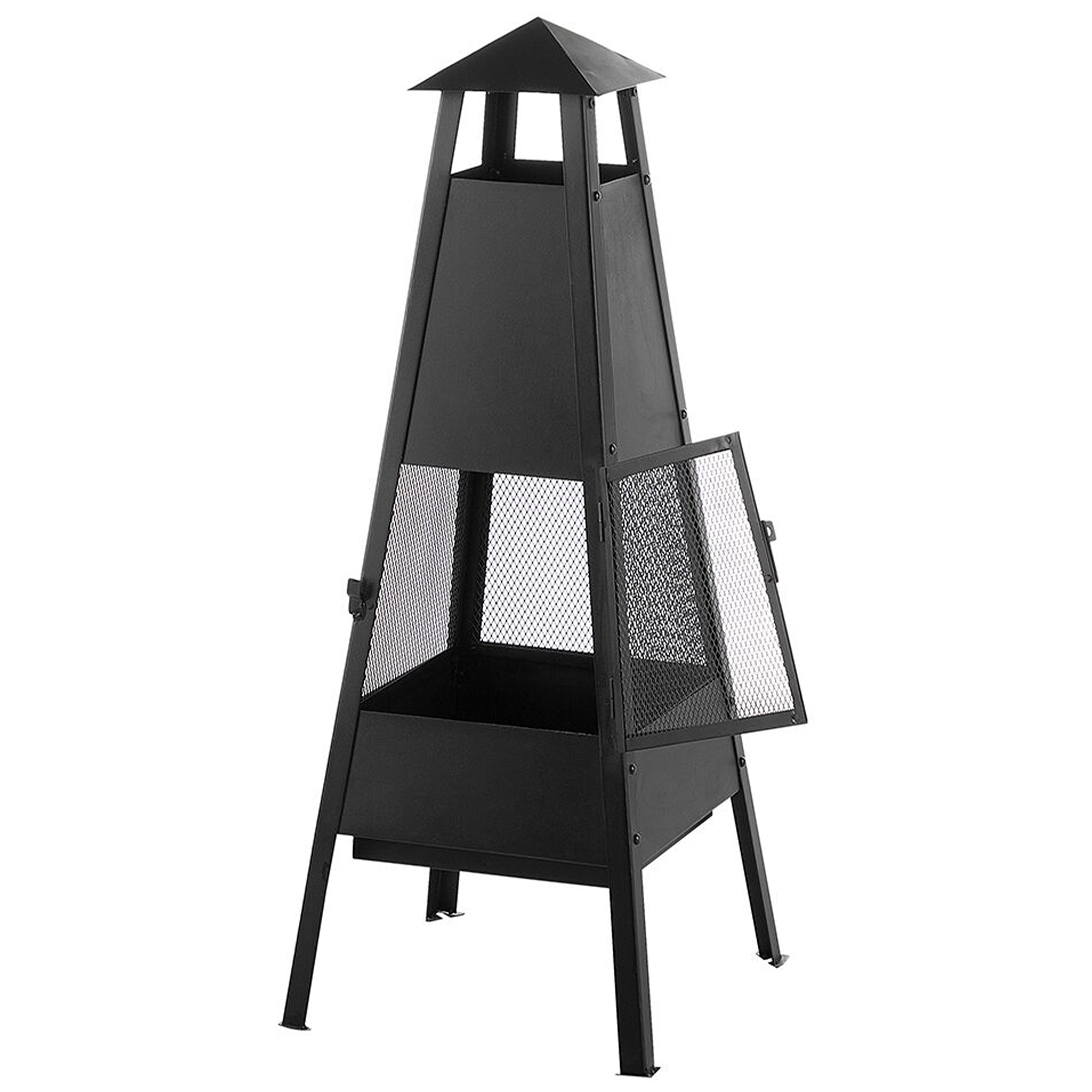 Tornin mallinen tulisija. Tämä tulisija tarjoaa luotettavan lämmön- ja valonlähteen, joka pidentää puutarhan tai terassin käyttöaikaa auringonlaskun jälkeen. Avoimen teräsrakenteen ansiosta lämpö säteilee kaikkiin suuntiin, ja korkeat suojaseinät pitävät liekit turvallisesti sisällä. Puun tai hiilen polttamiseen suunniteltu tulisija on helppohoitoinen, eikä se vaadi kaasua tai sähköä. Vakaa jalusta pitää rakenteen turvallisena erilaisilla pinnoilla, ja leikkauskuvio tukee ilmavirtaa tehokkaan palamisen varmistamiseksi. Mattamusta viimeistely ja moderni muoto tekevät siitä sekä käytännöllisen lämmönlähteen että visuaalisesti näyttävän ulkotilan elementin.
