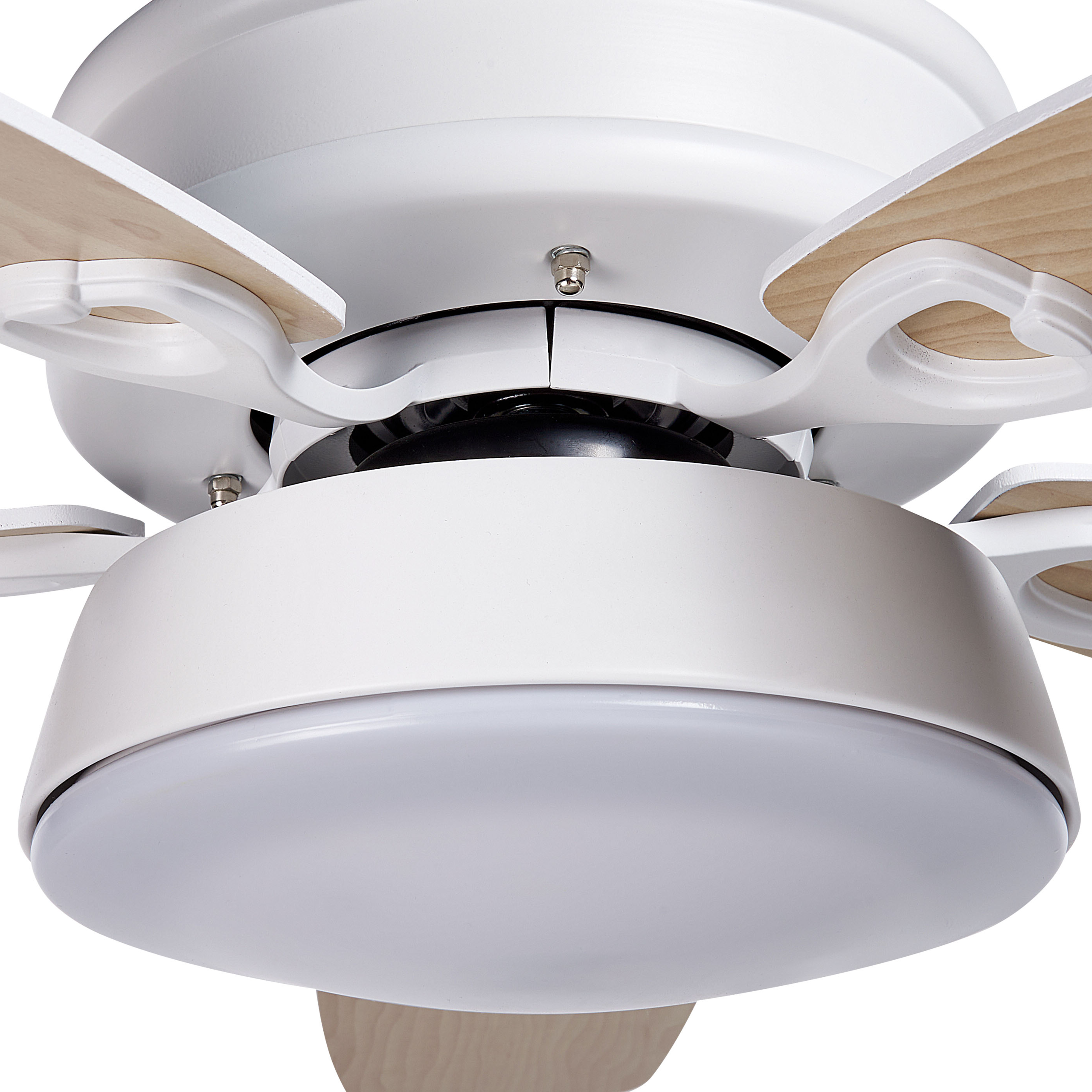 Skandinaavinen kattotuuletin valaisimella. Tuo ajatonta eleganssia olohuoneeseen tai makuuhuoneeseen tällä lumoavalla tuuletinvalaisimella, jonka klassinen muotoilu sopii kaikkiin tyylisuuntauksiin. Sen integroitu LED-valo tarjoaa 3 värilämpötilaa ja valaisee tilan miellyttävällä hajavalolla. Kätevän kaukosäätimen avulla voit vaivattomasti säätää tuulettimen nopeutta ja asettaa ajastimen jopa 8 tunniksi. Valkoinen rautarunko ja puun kaltaiset lastulevystä valmistetut siivekkeet yhdistävät saumattomasti klassisen muotoilun ja luonnollisen kauneuden.