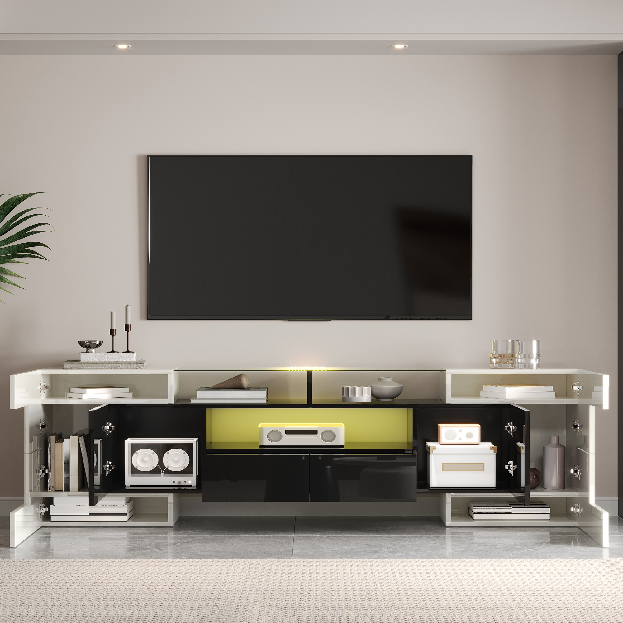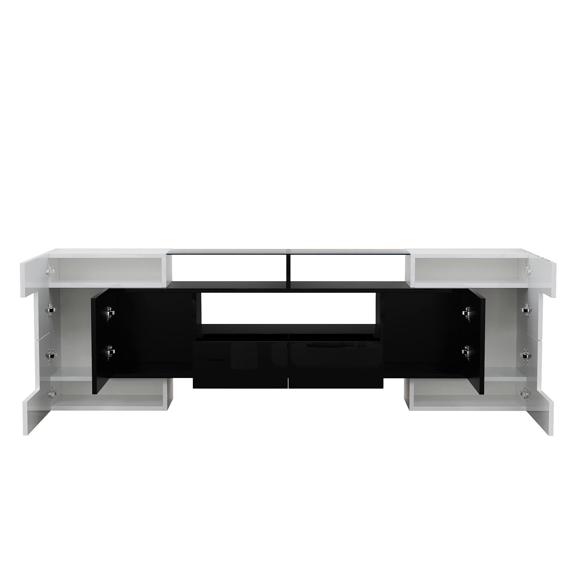 TV-kaappi, matala kaappi LED-valaistuksella, kiiltävä, kiiltävä valkoinen, musta