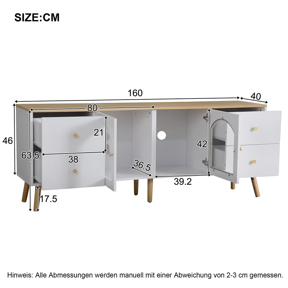 KOMHTOM-kaappi on suunniteltu tuomaan käytännöllisyyttä ja selkeyttä kodin arkeen. Sen koko 40 × 160 × 63,5 cm tarjoaa riittävästi tilaa televisiolle ja muille kodin tavaroille. Kaapissa on neljä tukevaa puujalkaa, jotka tukevat painavaa kokonaisuutta vakaasti ja turvallisesti myös pitkäaikaisessa käytössä.