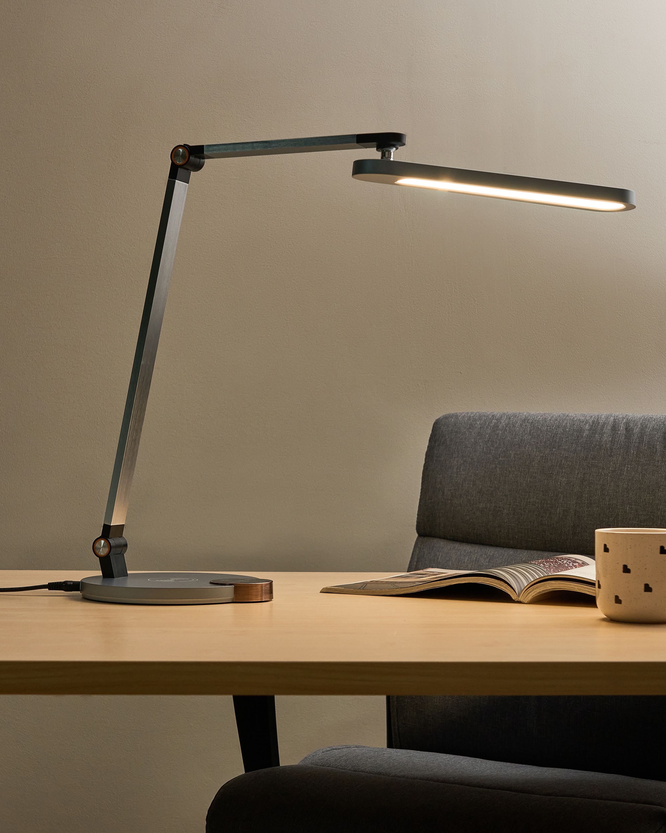 Työpöydän LED-valaisin CAROY langattomalla laturilla Harmaa