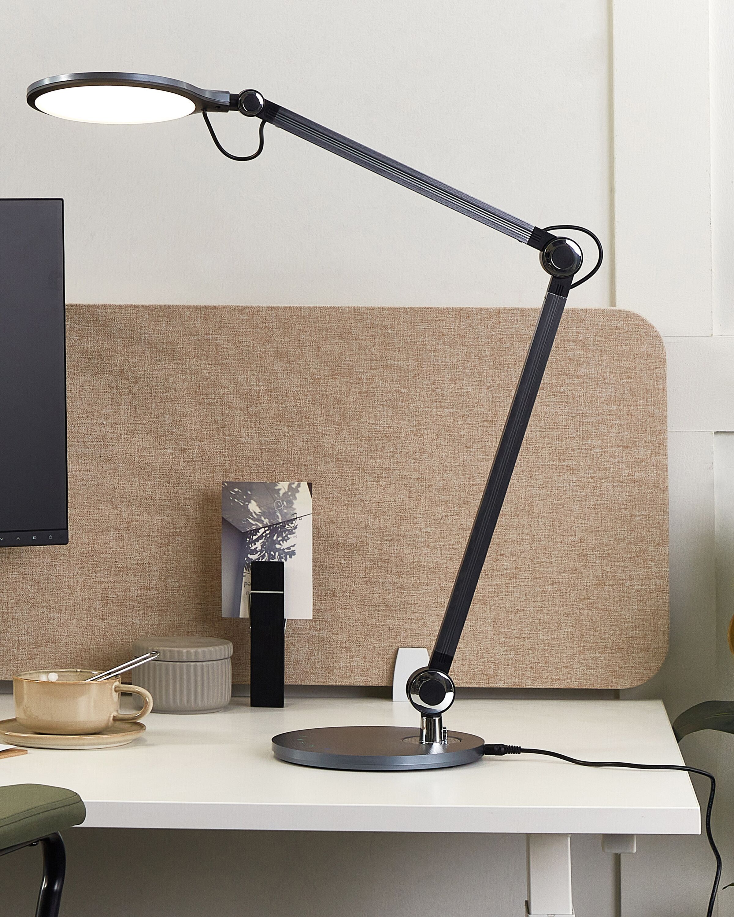 Moderni säädettävä työpöydän valaisin. Säädettävä pöytävalaisin yhdistää käytännöllisyyden ja minimalistisen muotoilun täydellisesti. Se sopii loistavasti mihin tahansa moderniin, industriaaliseen tai skandinaaviseen työtilaan. Alumiininen jalka takaa vakauden, ollen samalla erittäin helppo ylläpitää. Valaisimen jalustassa on helppokäyttöinen kosketuspaneeli, joka mahdollistaa nopean päälle ja pois kytkemisen. Lisäksi himmennystoiminto sekä kolme valon värilämpötilaa takaavat miellyttävän valaistuksen niin päivällä kuin illallakin.