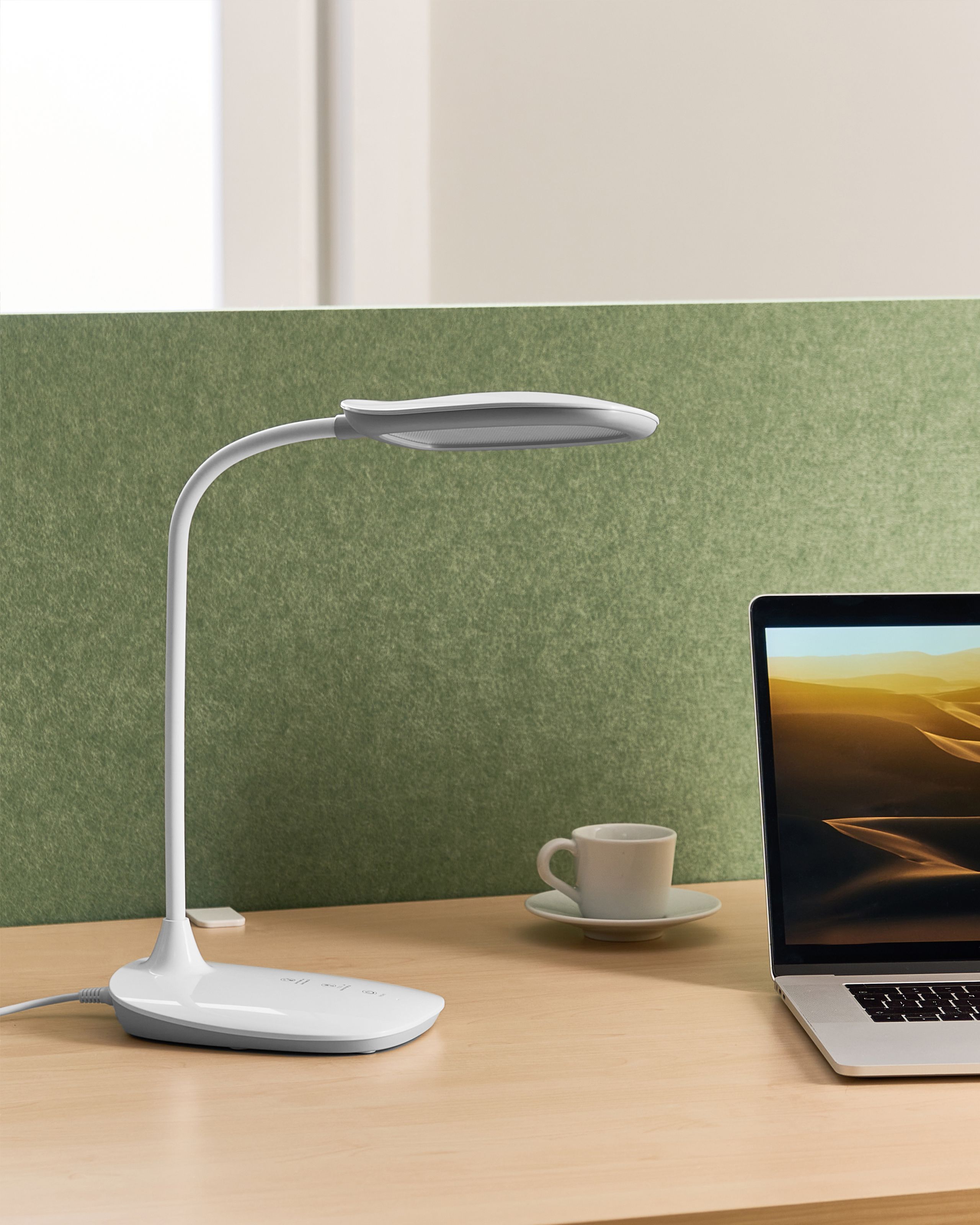 Moderni säädettävä toimiston valaisin. Tämä tyylikäs LED-pöytävalaisin on suunniteltu tarjoamaan mukavuutta ja monipuolisuutta päivittäiseen työskentelyyn tai opiskeluun. Se tuottaa häikäisemätöntä, pehmeää valoa, joka vähentää heijastuksia ja silmien rasitusta, luoden miellyttävän ja tasaisesti jakautuvan valaistuksen. Sekä portaattomasti että porrastetusti säädettävä himmennystoiminto mahdollistaa valon voimakkuuden tarkan säätämisen omien mieltymysten mukaan, ja kolme värilämpötilaa – lämmin, neutraali ja viileä – tarjoavat sopivan valaistuksen eri tilanteisiin. Kätevä kosketuskytkin takaa vaivattoman käytön, ja yövalotoiminto mahdollistaa valaisimen käytön myös pimeässä silmiä rasittamatta. Joustavan, säädettävän varren ansiosta valo voidaan suunnata juuri sinne, missä sitä tarvitaan, mikä takaa optimaalisen valaistuksen mihin tahansa tehtävään. Moderni muotoilu ja älykkäät ominaisuudet tekevät tästä valaisimesta ihanteellisen valinnan kotitoimistoon tai opiskelutilaan.