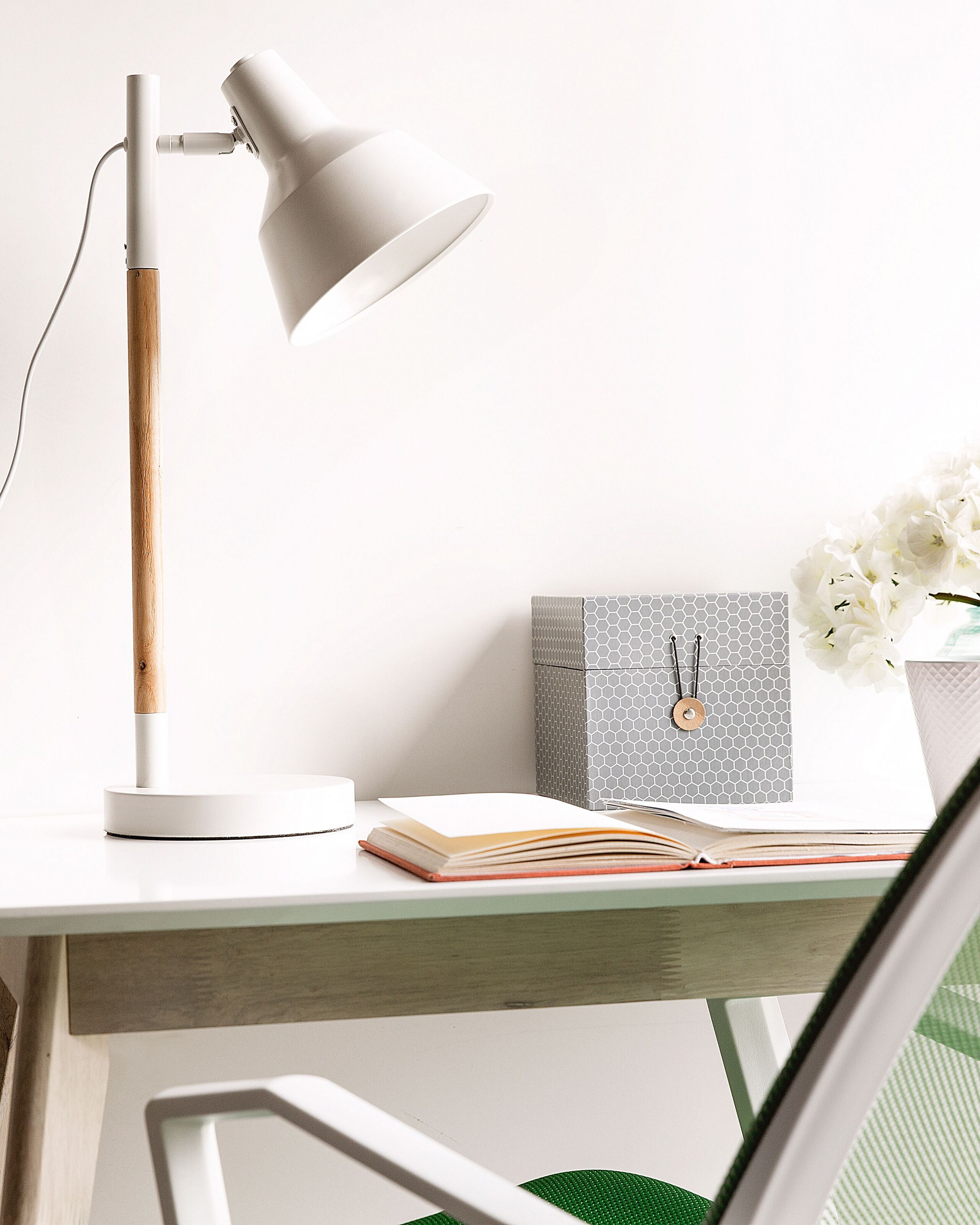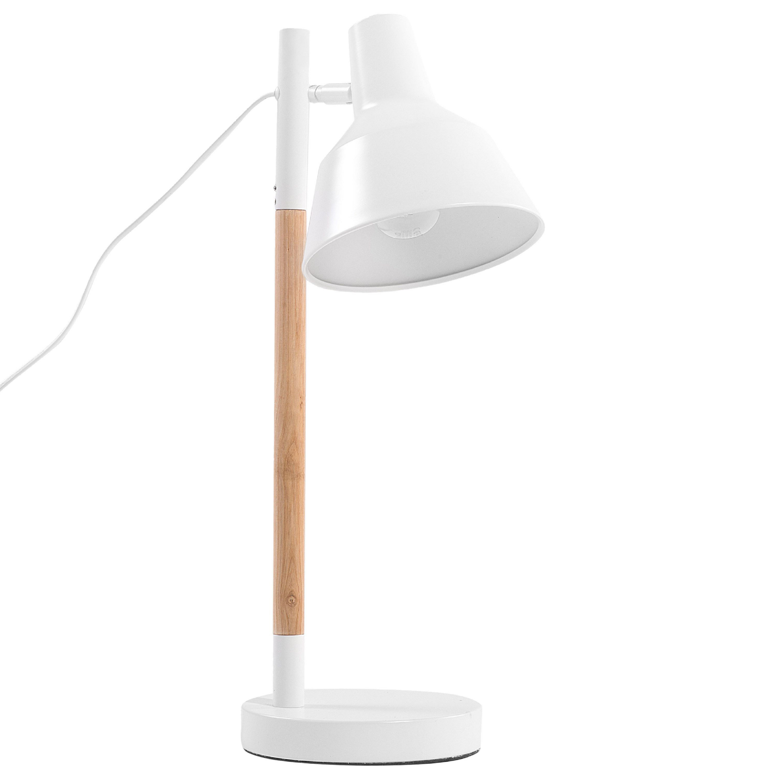 Skandinaavinen säädettävä pöytävalaisin. Ajaton pöytävalaisin, jossa on heleää puuta ja valkoista metallia. Säädettävä varjostin luo miellyttävän kohdevalaistuksen esimerkiksi lukuhetkiin. Tämä nykyaikainen valaisin on äärimmäisen monikäyttöinen, sillä se toimii mainiosti olohuoneessa, työhuoneessa, keittiössä tai makuuhuoneessa. Tuote ei sisällä polttimoa.
