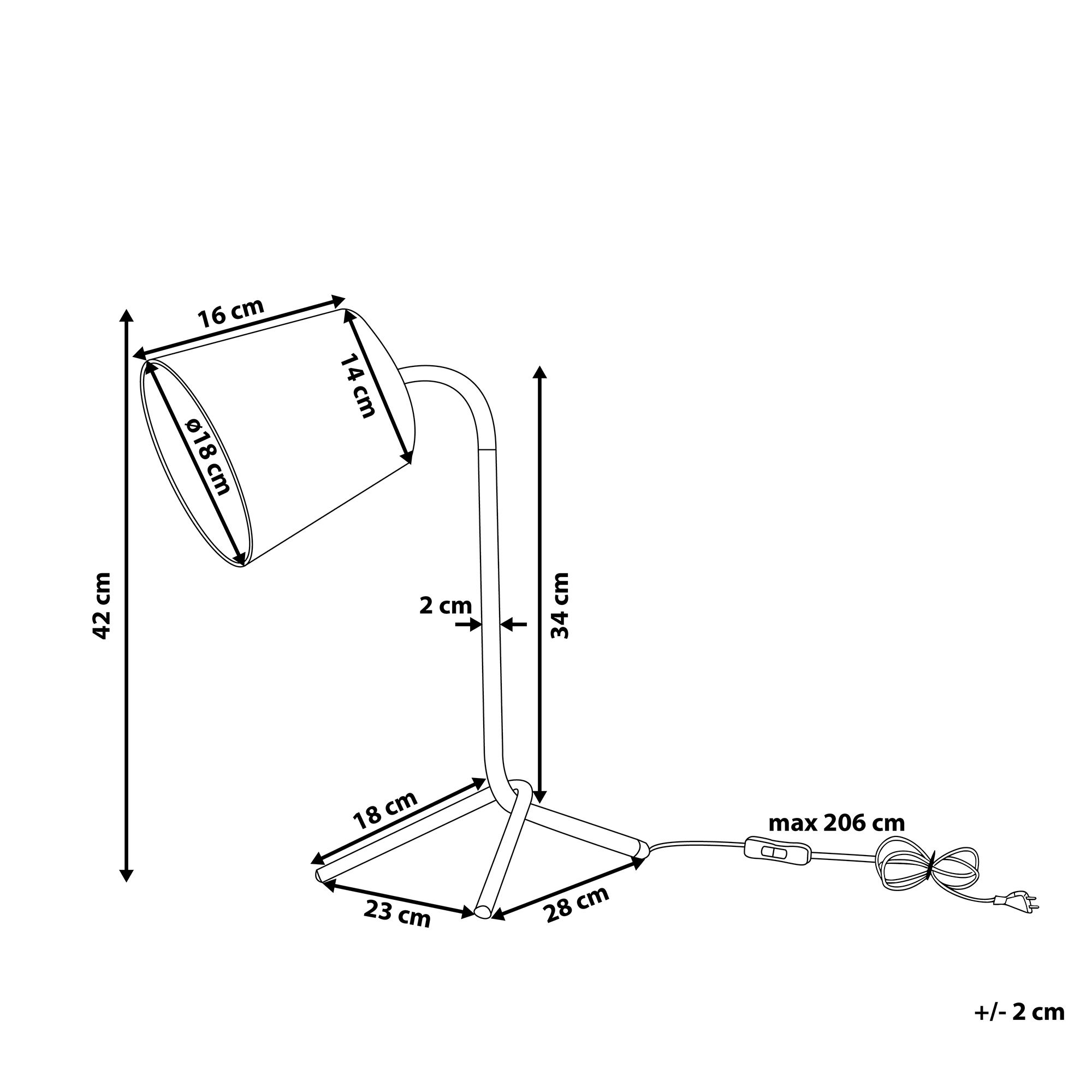 Pieni kolmijalkainen valaisin. Tämä tyylikäs pöytävalaisin sopii täydellisesti sisustukseen kuin sisustukseen, esimerkiksi työpöydälle tai yöpöydälle lukuvaloksi. Polypuuvillaa sisältävä lampunvarjostin on ulkoa musta ja sisältä oranssin värinen. Valaisimessa on 206 cm pitkä kaapeli ja valokatkaisija, joten voit kätevästi sijoittaa sen paikkaan kuin paikkaan.