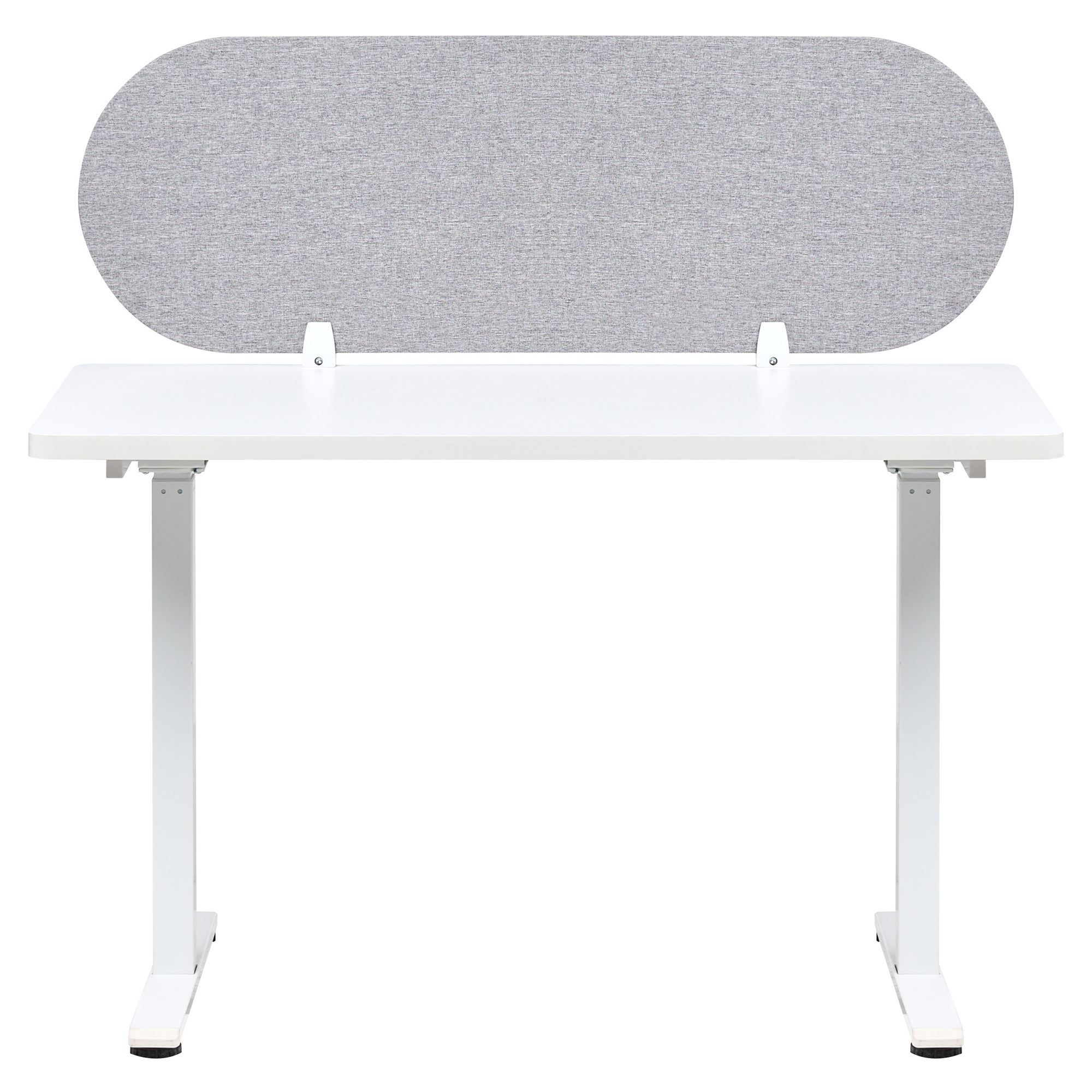 Ovaali akustinen pöytäsermi kiinnikkeillä. Lisää työpisteelle ripaus yksityisyyttä tällä virtaviivaisella vaaleanharmaalla työpöydän väliseinällä. Kestävällä, ääntä eristävällä polyesterikankaalla verhoiltu pöytäsermi on valmistettu synteettisestä materiaalista. Se sopii täydellisesti kodikkaan ja keskittyneen ympäristön luomiseen, mukautuen vaivattomasti sekä kotona että toimistossa työskentelyyn. Moderni, kaareva muotoilu ja säädettävät klipsikiinnikkeet tekevät sermistä sekä tyylikkään että toimivan lisän, joka sulautuu saumattomasti jokaiseen nykyaikaiseen kotiin.