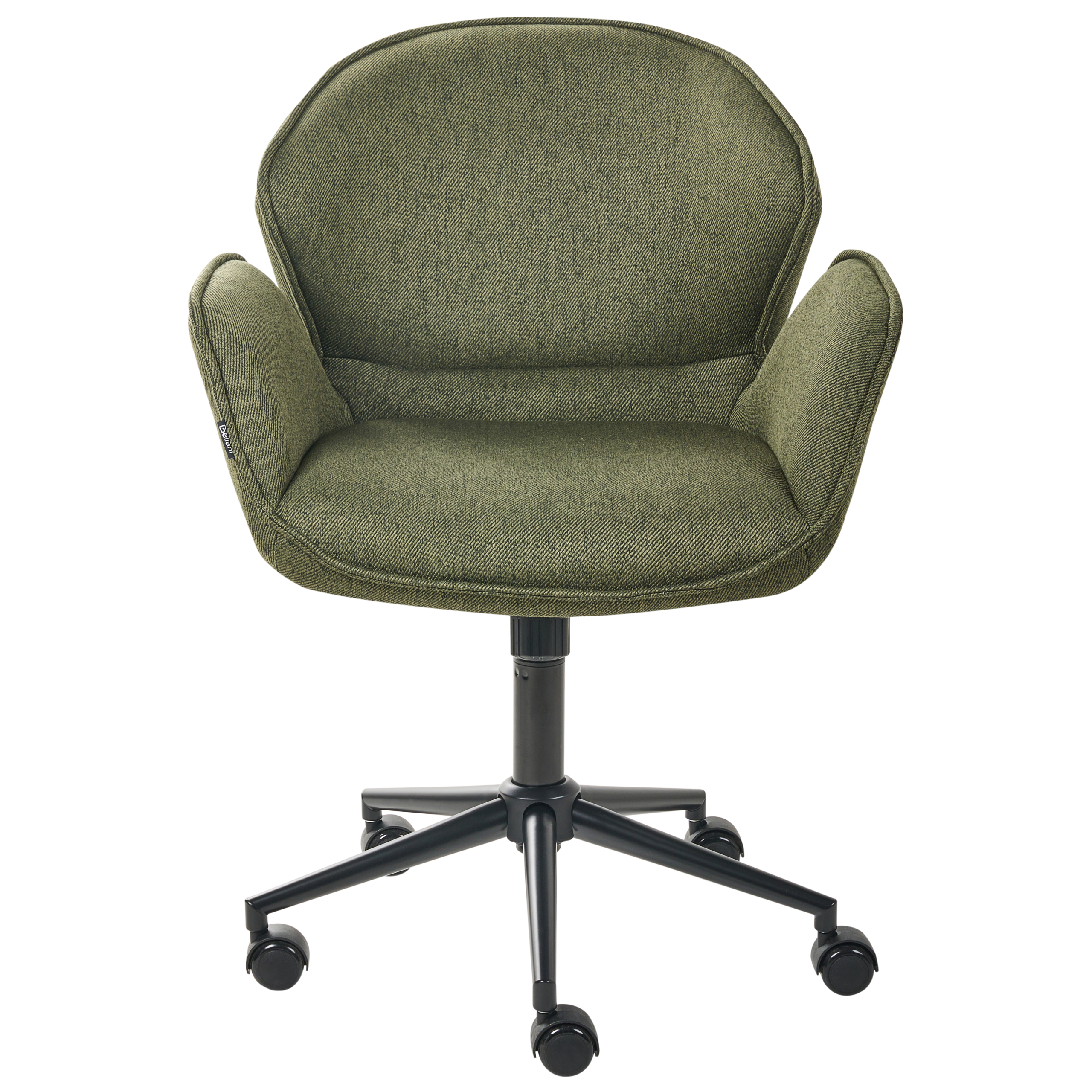 Moderni pehmustettu toimistotuoli. Tämä kestävällä polyesterikankaalla verhoiltu työtuoli tarjoaa tyylikkyyttä ja pitkäkestoista mukavuutta. Siinä on säädettävä istuinkorkeus, sulavasti pyörivä jalusta ja kallistusmekanismi, jotka takaavat räätälöidyn tuen koko työpäivän ajaksi. Tukeva metallijalusta varmistaa vakauden, kun taas muotoiltu istuin ja käsinojat tarjoavat ergonomista mukavuutta. Monipuolinen valinta sekä kotitoimistoihin että ammattimaisiin työtiloihin.