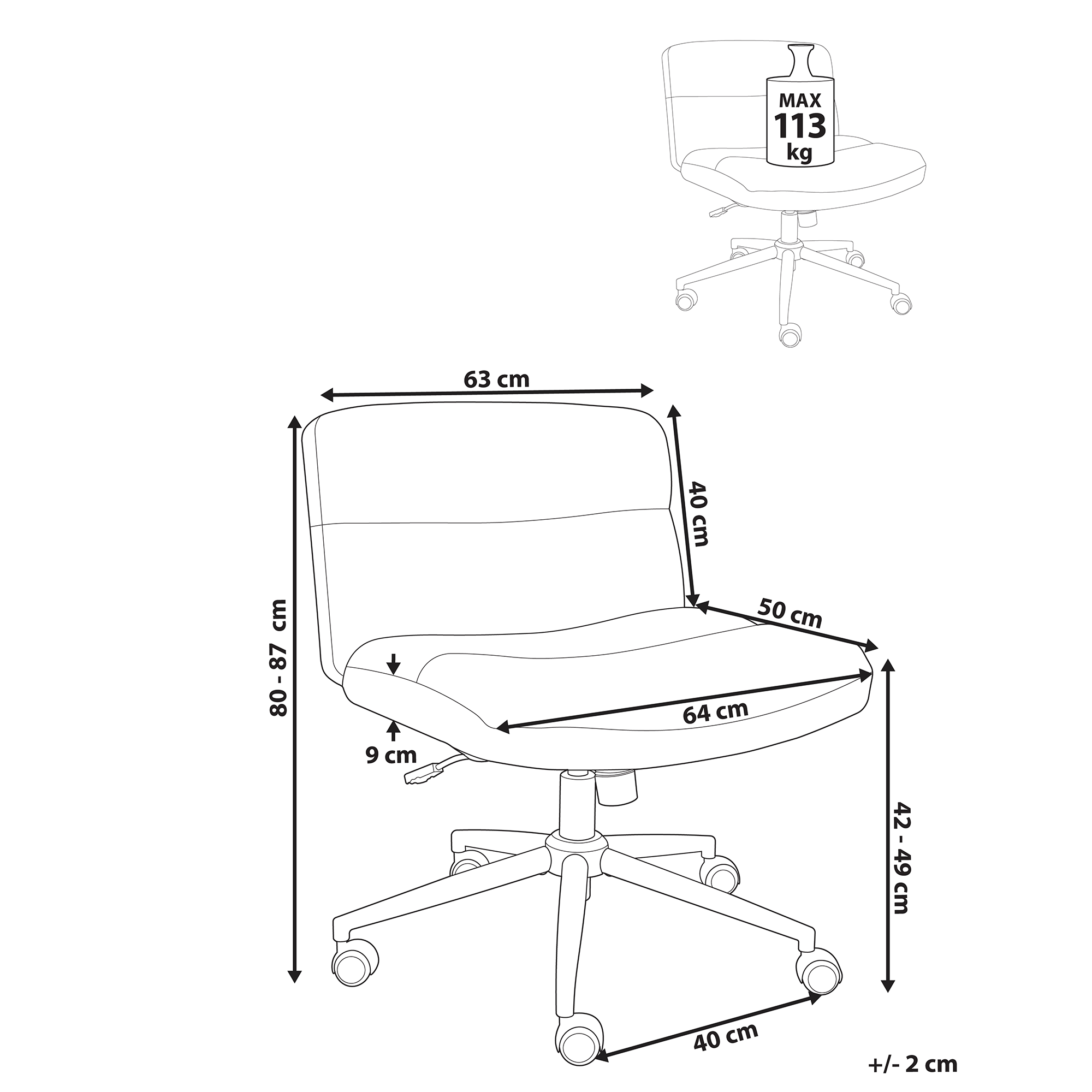 Ominaisuudet: Pneumaattinen istuinkorkeuden säätö, 360° kääntyvä, Tasaisesti rullaavat pyörät, Kallistusmekanismi jäykän selän helpottamista varten, Leveä ja mukava istuin, Sopii kotiin ja toimistoon