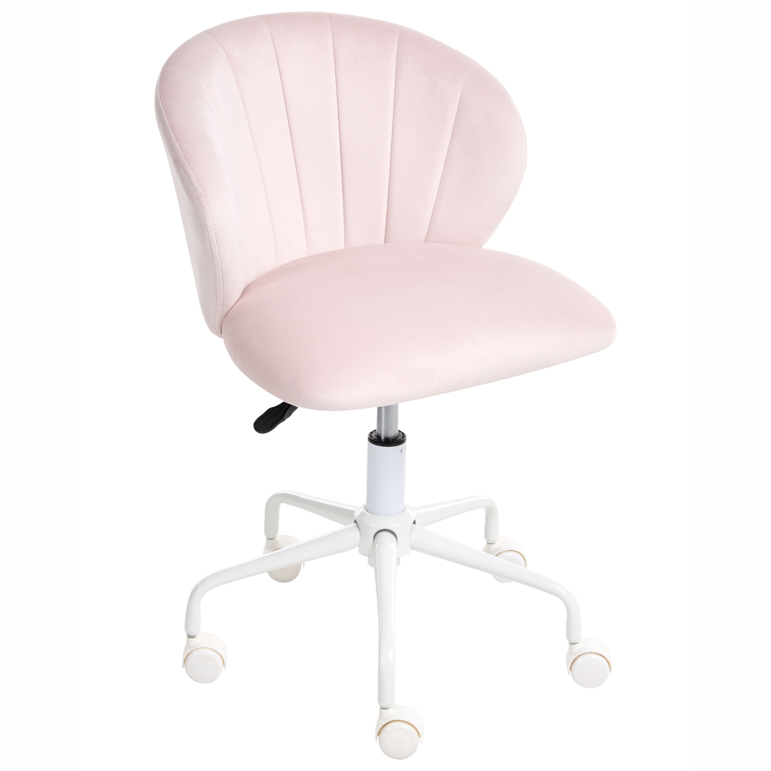 Verhoiltu työtuoli simpukkaselkänojalla. Lisää kotitoimistoon tai teinin huoneeseen ripaus tyyliä tällä suloisella työtuolilla, jota somistaa simpukan muotoinen selkänoja. Pehmeä, kestävä samettiverhoilu varmistaa mukavuuden, kun taas raudasta valmistettu ristikkojalka takaa vakauden. Säädettävän korkeuden ansiosta työtuoli on helppo sovittaa tarpeisiin sopivaksi, ja 360° kääntyvyys sekä sulavasti rullaavat pyörät mahdollistavat sujuvan liikuvuuden. Työtuoli sulautuu vaivattomasti mihin tahansa sisustukseen.