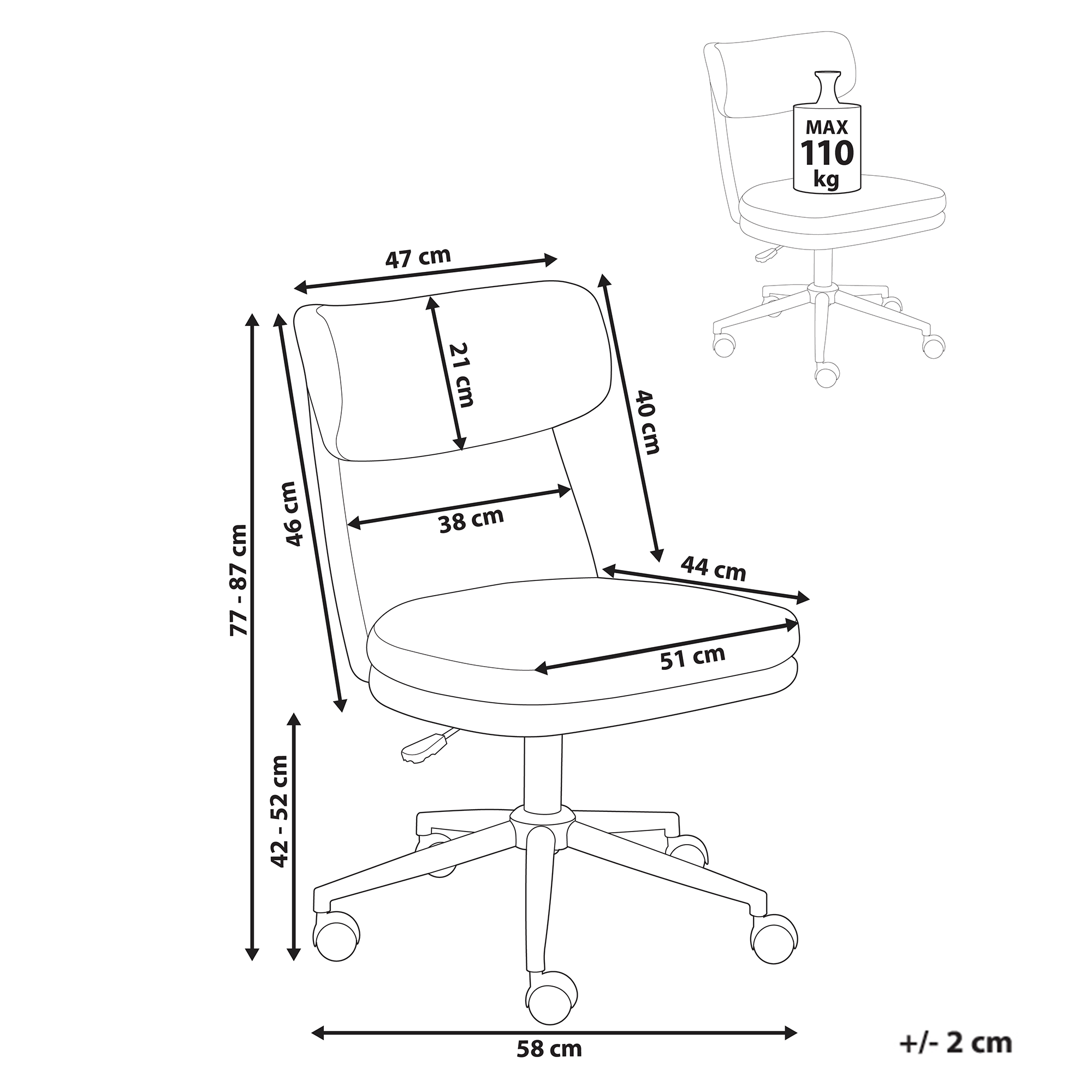 Istuimen korkeus: 42-52 cm