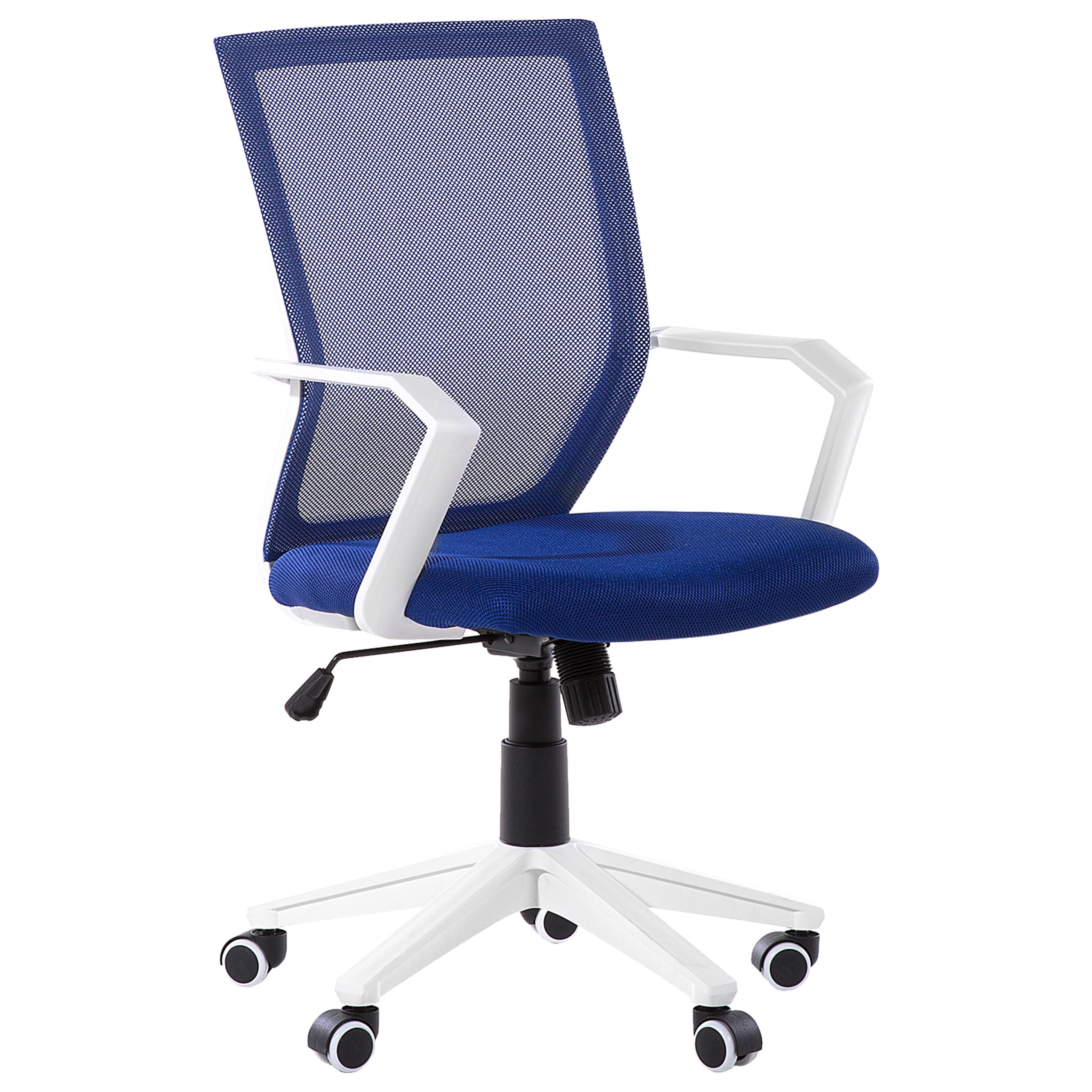 Korkeussäädettävä työtuoli verkkokangasselkänojalla. Tee työskentelystä mukavampaa tämän mukavan ja käytännöllisen työtuolin avulla. Tuoli on verhoiltu tummansinisellä, hengittävällä verkkokankaalla, joka tekee tuolista tyylikkään, kun taas vankka rakenne takaa pitkän iän. Synteettisistä materiaaleista valmistetussa tuolissa on mukava korkeudensäädettävä istuin. Korkea selkänoja ja leveät käsinojat auttavat pysymään rentona ja keskittyneenä pitkien työpäivien aikana. Tuolia on helppo liikuttaa 5 pehmeästi rullaavan nailonpyörän avulla ja 360° kääntömekanismin avulla voit lähestyä töitä aina parhaasta, tuottavimmasta kulmasta.