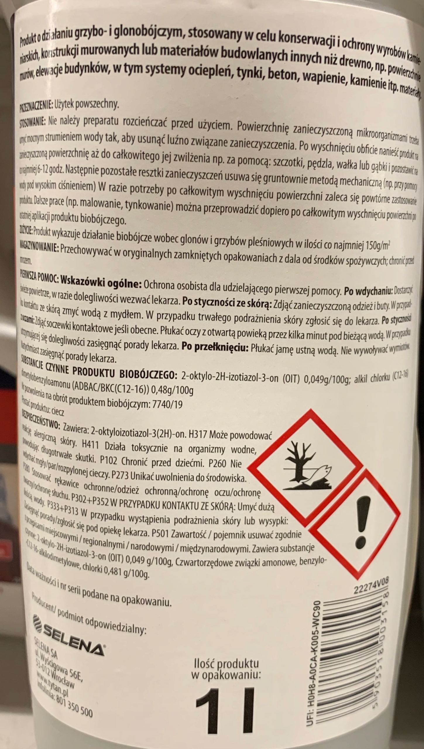 Tytan-merkkinen sienitautien torjunta-aineAuttaa poistamaan homeen, homeen ja levien aiheuttamia tummia mustia jälkiä korkealle kosteudelle alttiina olevilta seiniltä olosuhteissa, joissa huuhtoutumisvaaraa ei ole.