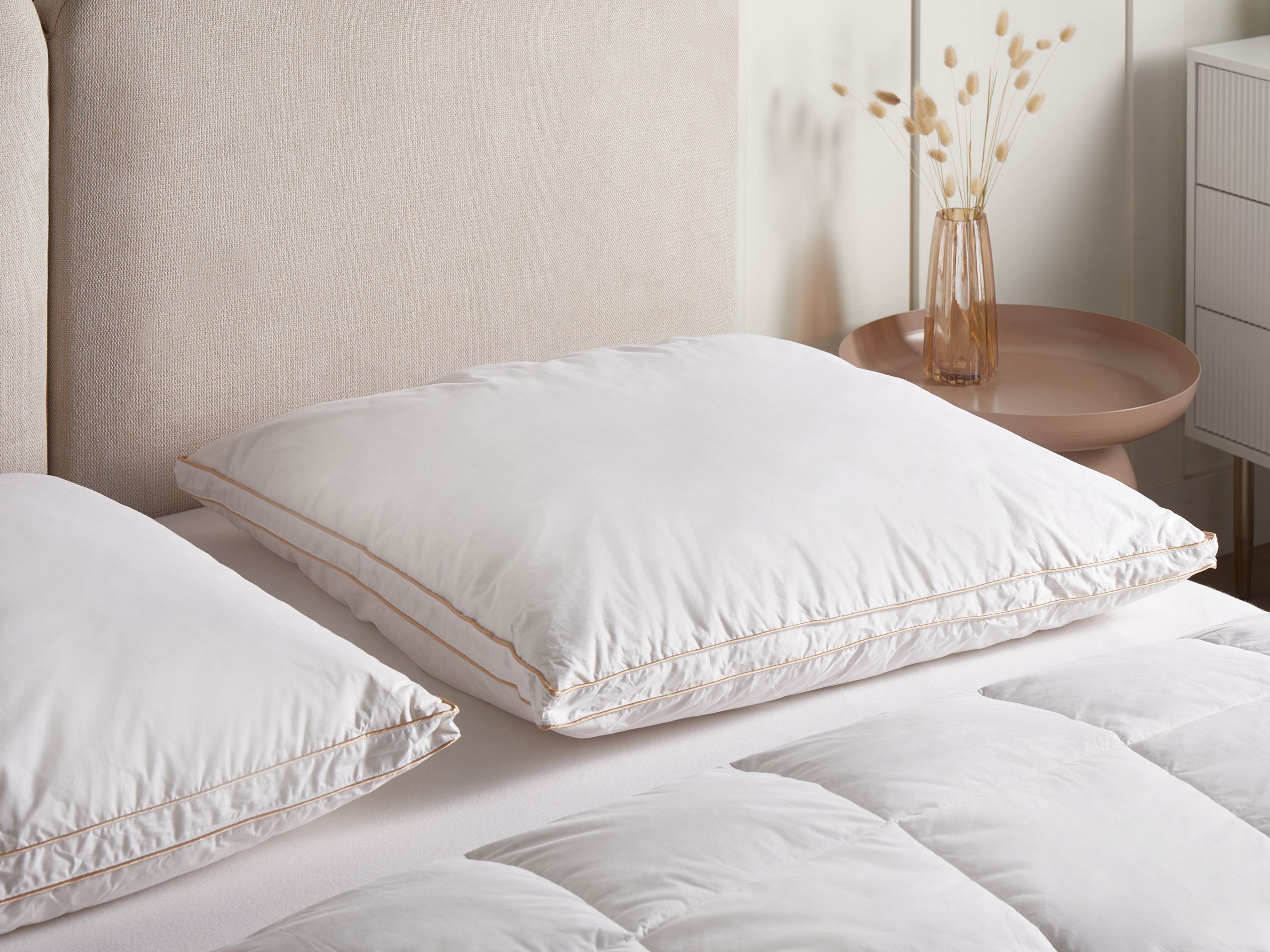 3-kammioinen tukityyny ankanhöyhen ja -untuvatäytteellä. Tämä premium-tason korkeaprofiilinen tyyny tarjoaa ihanteellisen korkeuden rauhalliseen yöuneen. Se on suunniteltu erityisesti kyljellään nukkujille ja korkeaa tyynyä suosiville, tarjoten optimaalisen niskan asennon ja erinomaisen tuen. Puhdas, hengittävä puuvillapäällinen tuntuu luonnollisen viileältä ja mukavalta ihoa vasten. Tyynyssä on kolmikammioinen rakenne, jossa ylellisen pehmeällä ankanuntuvalla ja ripauksella ankanhöyheniä täytetyt ulommat kerrokset yhdistyvät täysin ankanhöyhenillä täytettyyn sisäosaan. Ulommat kammiot takaavat hemmottelevan pehmeyden, kun taas sisempi kammio säilyttää tyynyn muodon ja joustavuuden.