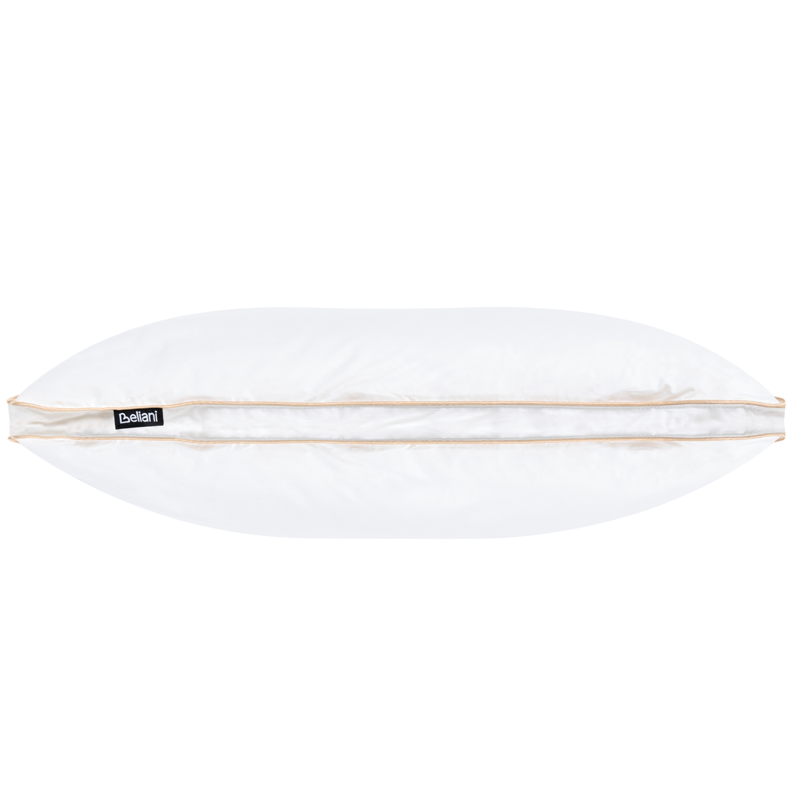 3-kammioinen tukityyny ankanhöyhen ja -untuvatäytteellä. Tämä premium-tason matalaprofiilinen tyyny tarjoaa lempeän korotuksen, joka takaa luonnollisen asennon ja mukavan unen. Se sopii erinomaisesti selällään nukkujille ja tasaisempaa tyynyä suosiville, sillä se auttaa vähentämään niskan rasitusta ja edistää selkärangan oikeaa asentoa. Puhdas, hengittävä puuvillapäällinen tuntuu luonnollisen viileältä ja pehmeältä ihoa vasten. Tyynyssä on kolmikammioinen rakenne, jossa ylellisen pehmeällä ankanuntuvalla ja ripauksella ankanhöyheniä täytetyt ulommat kerrokset yhdistyvät täysin ankanhöyhenillä täytettyyn sisäosaan. Ulommat kammiot tarjoavat hemmottelevaa mukavuutta, kun taas sisempi kammio varmistaa pehmeän tuen ja kestävän muodon.