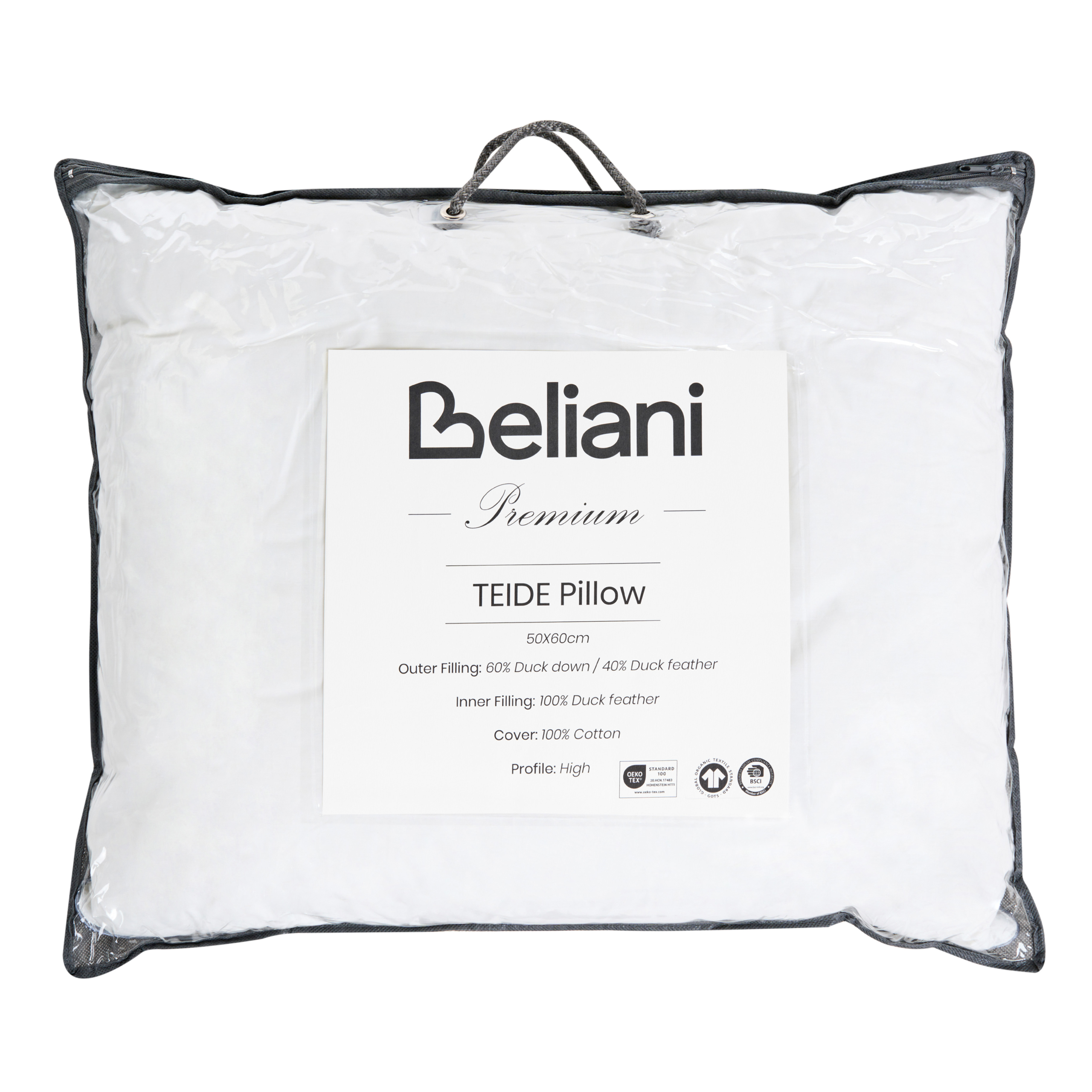 Tyyny 3 kammiota TEIDE Korkea ankanhöyhenet ja -untuva 50 x 60 cm