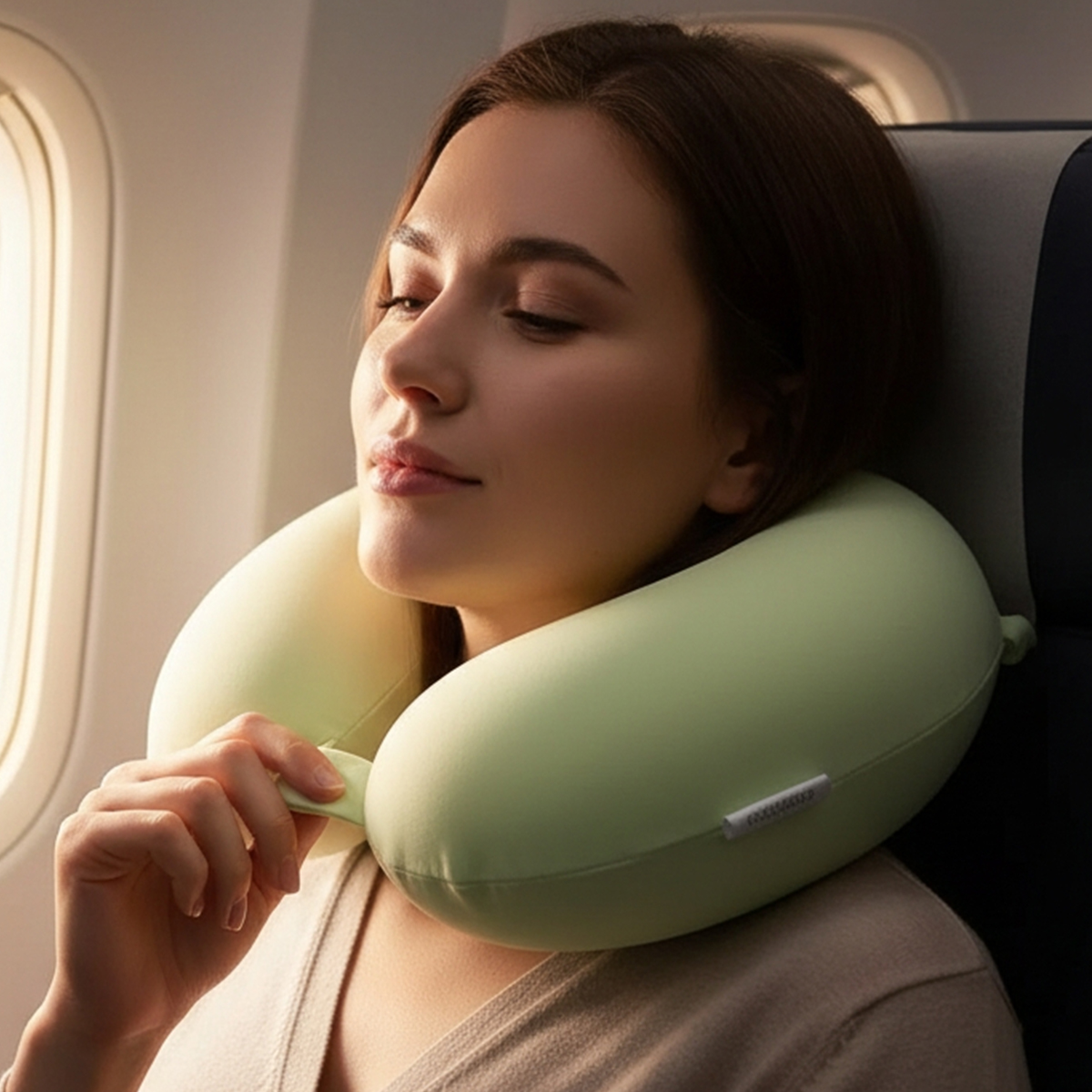 Tämä U-muotoinen matkatyyny on suunniteltu erityisesti tarjoamaan ergonomista niskatukea ja kestävää mukavuutta matkoilla tai lepäämisen aikana. Muistivaahtomuovi mukautuu luonnollisesti niskan kaarevuuteen ja vähentää lihasjännitystä. Hengittävä jääkangas antaa miellyttävän viileän tunteen, joka on ihanteellinen matkustamiseen tai rentoutumiseen.